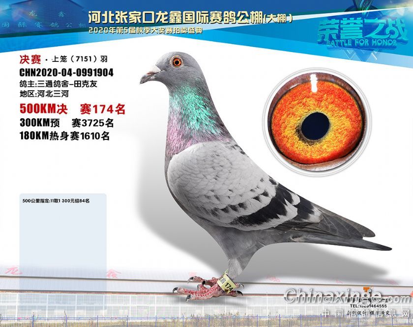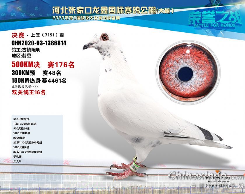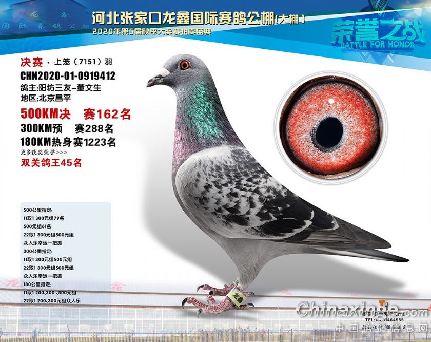 河北龙鑫公棚2020年秋季获奖鸽151-180名