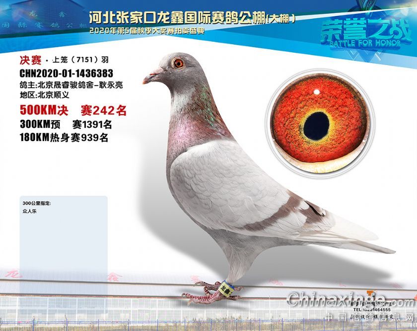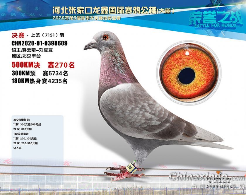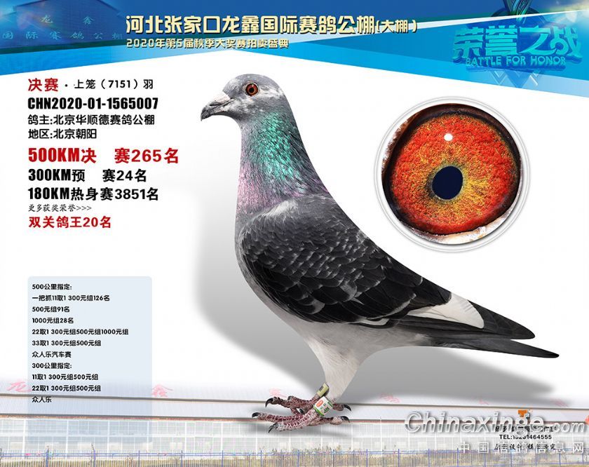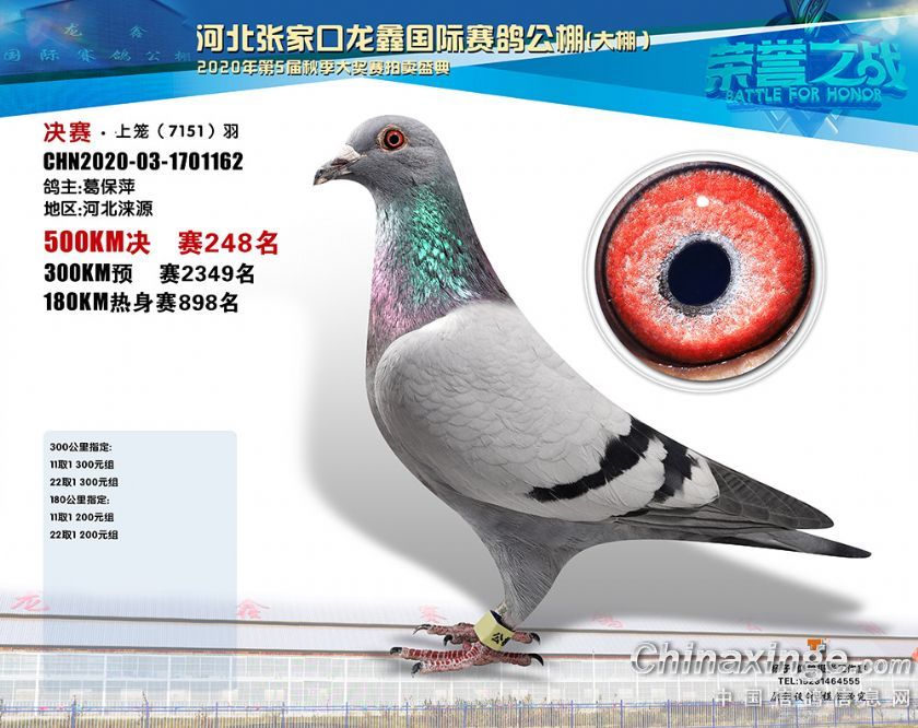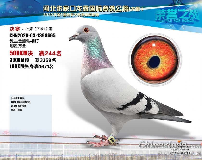 河北龙鑫公棚2020年秋季获奖鸽241-270名
