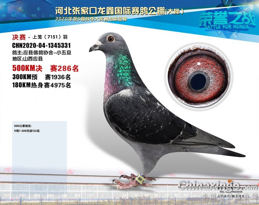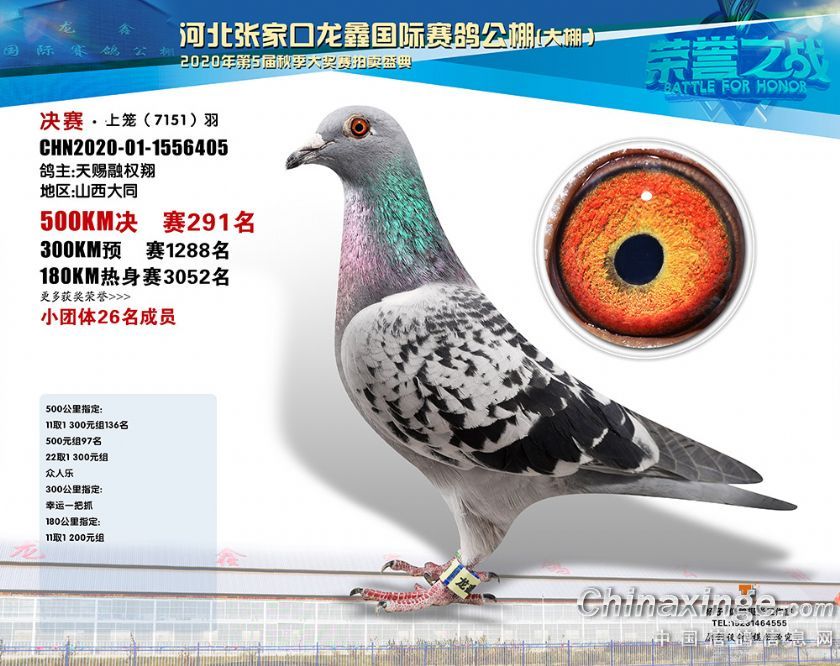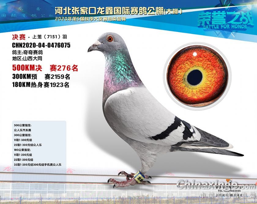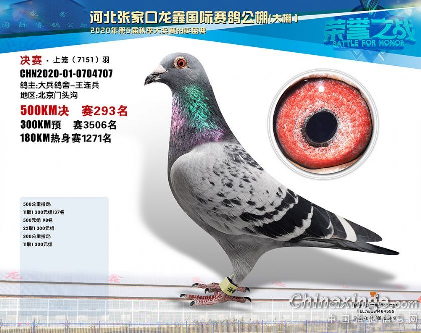 河北龙鑫公棚2020年秋季获奖鸽271-300名