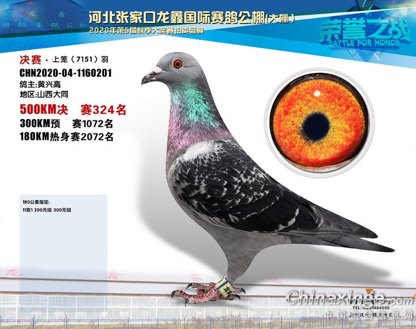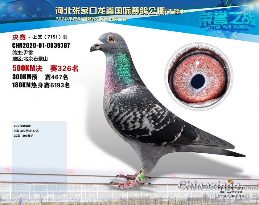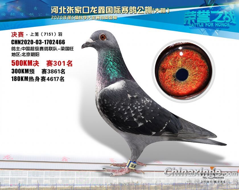 河北龙鑫公棚2020年秋季获奖鸽301-330名