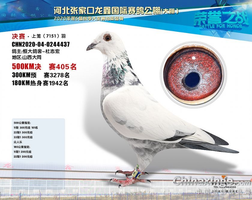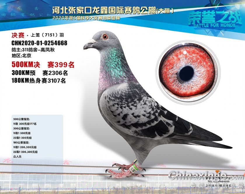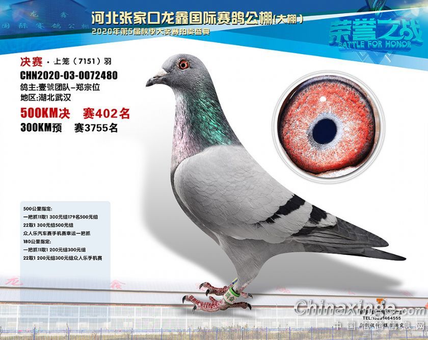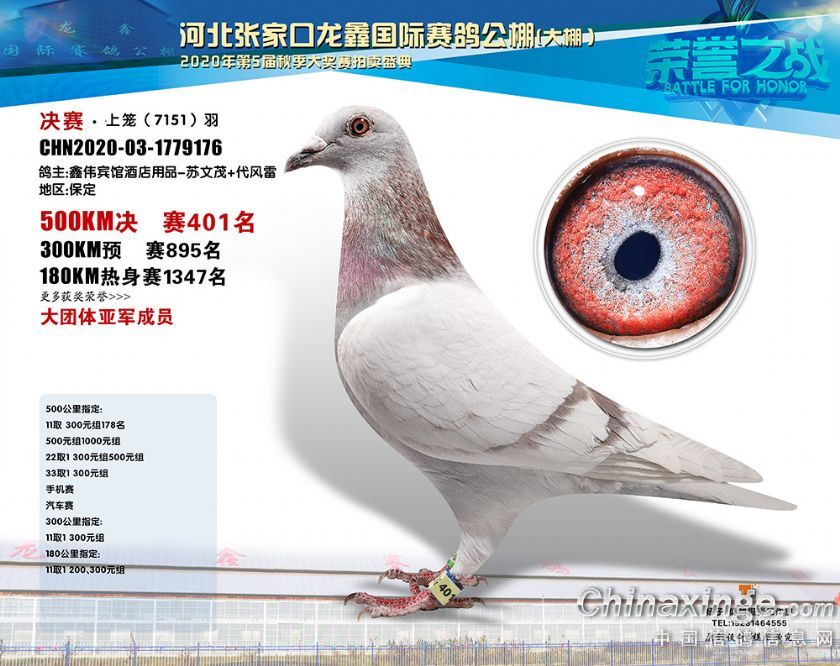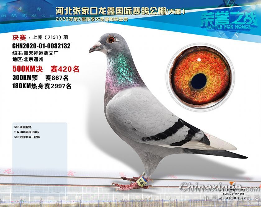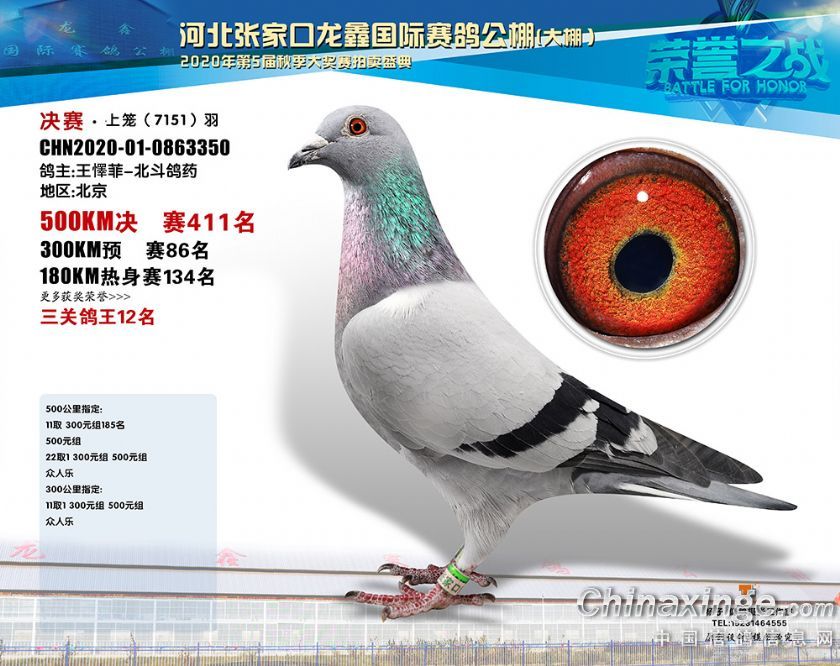河北龙鑫公棚2020年秋季获奖鸽391-420名