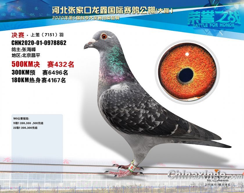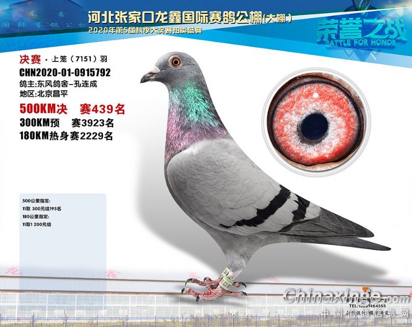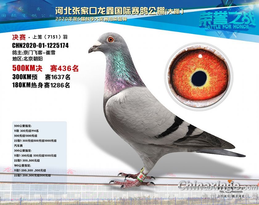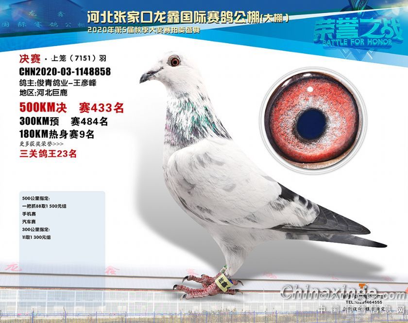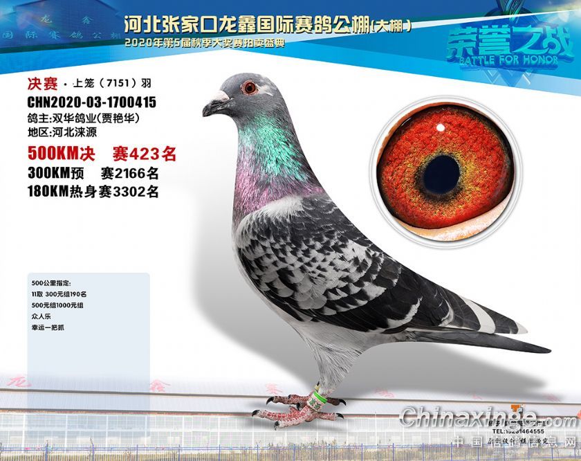 河北龙鑫公棚2020年秋季获奖鸽421-450名