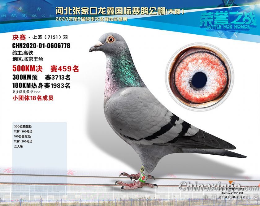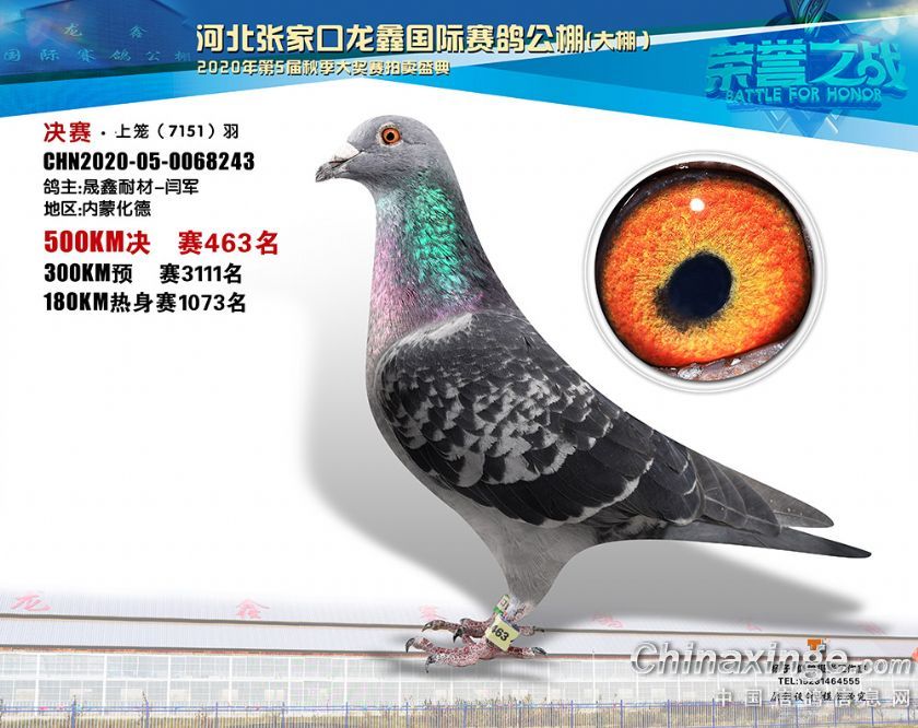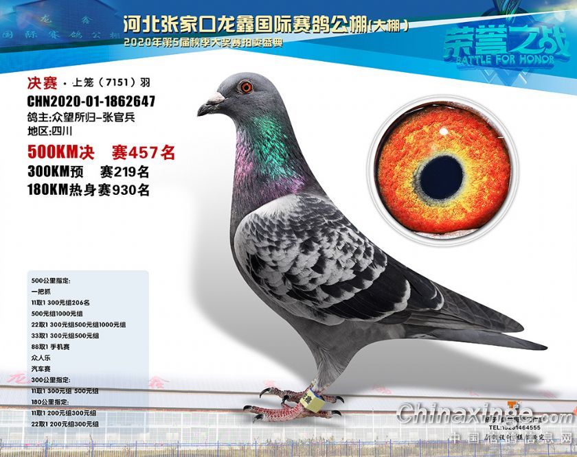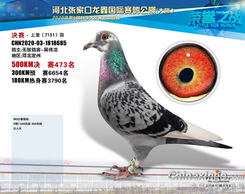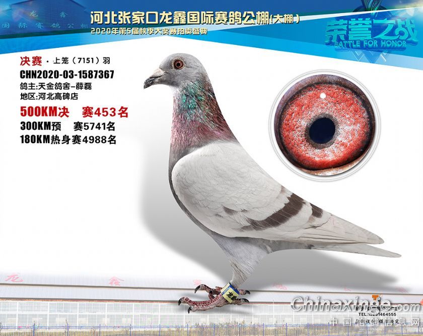 河北龙鑫公棚2020年秋季获奖鸽451-480名