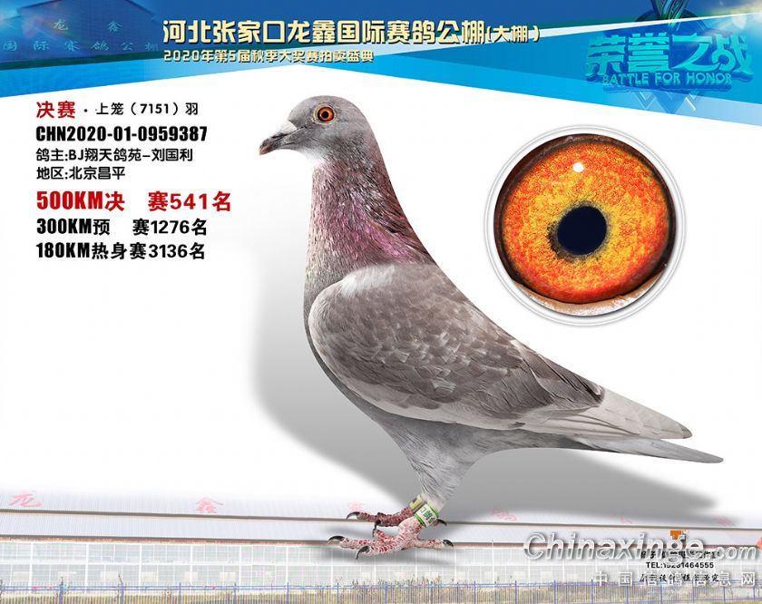 河北龙鑫公棚2020年秋季获奖鸽541-570名