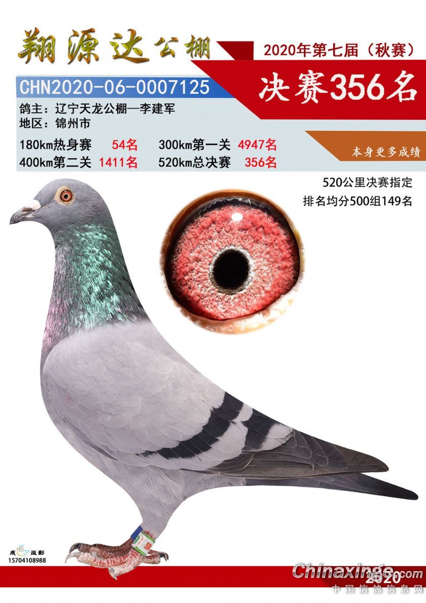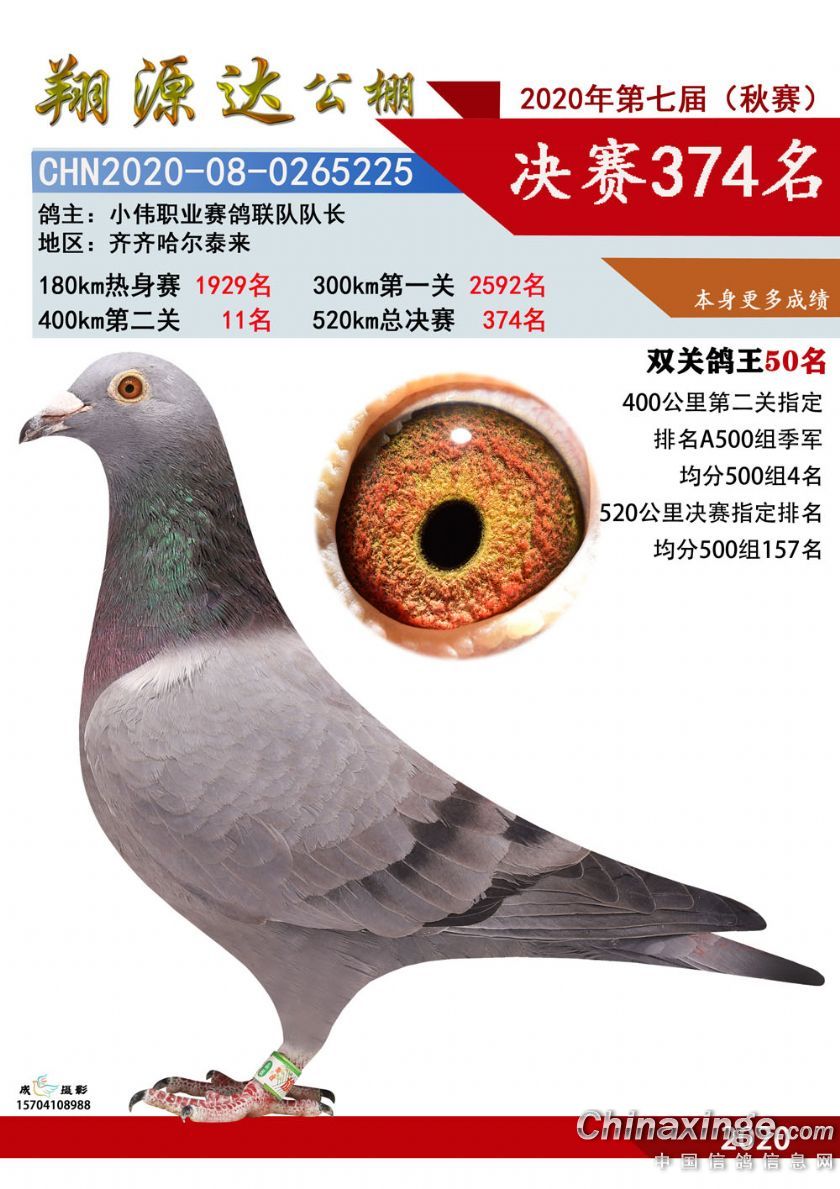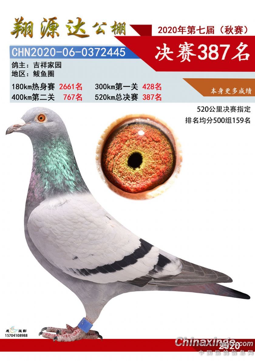 辽宁翔源达赛鸽公棚2020年决赛获奖鸽图片(351-400)