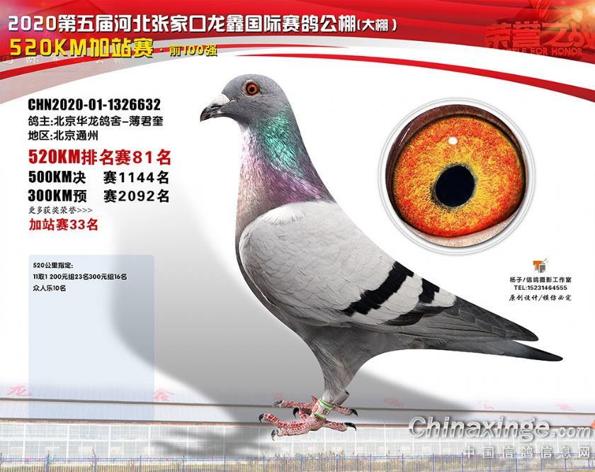 河北龙鑫公棚2020年秋季加站赛获奖鸽61-90名