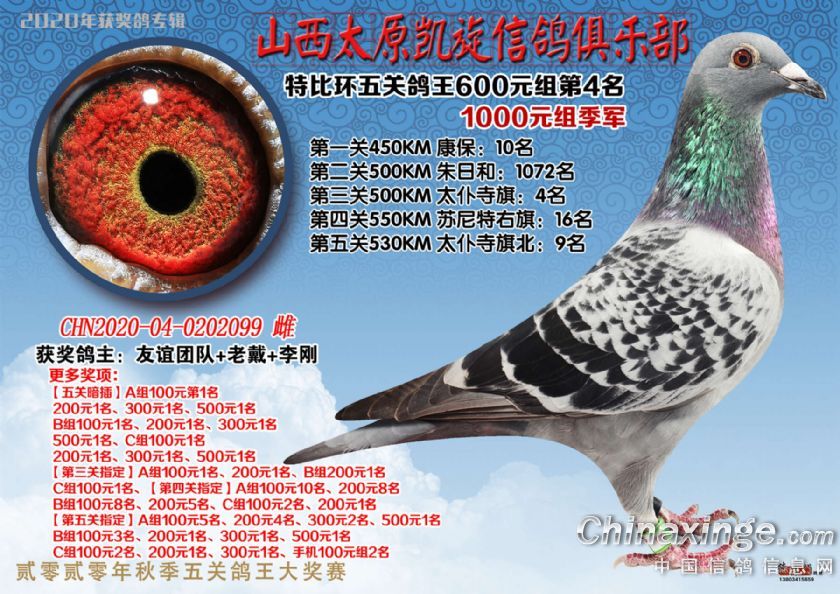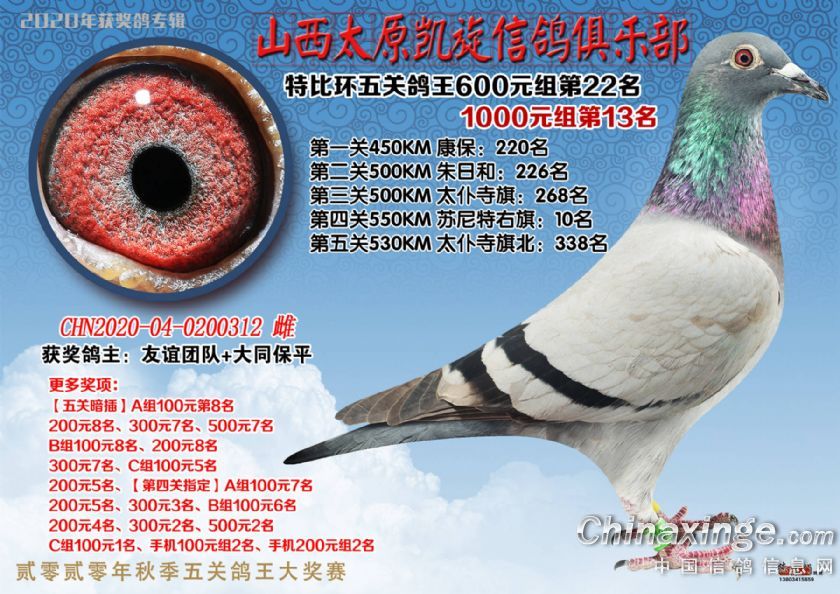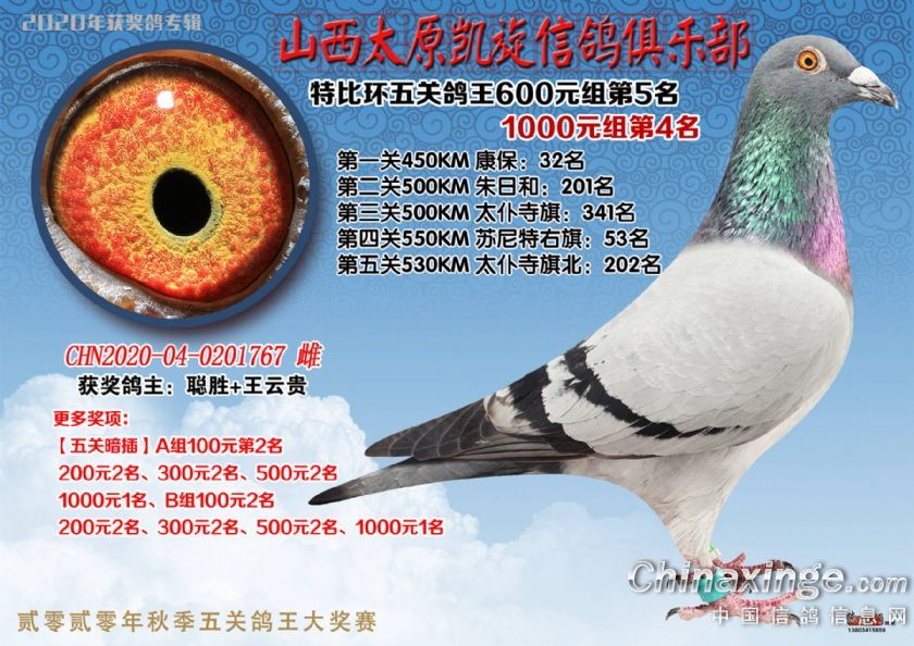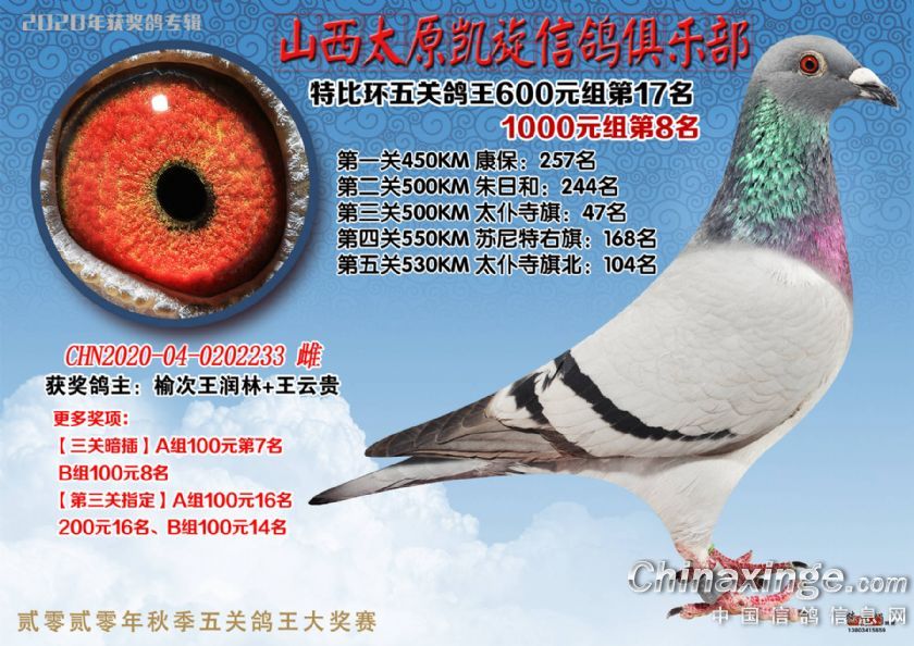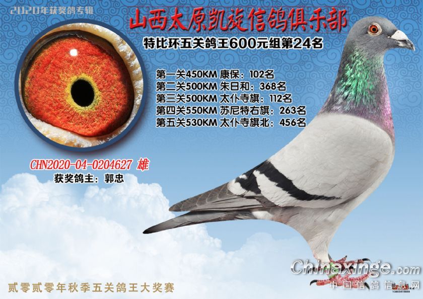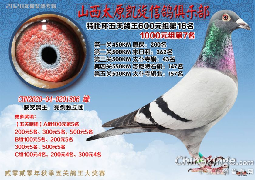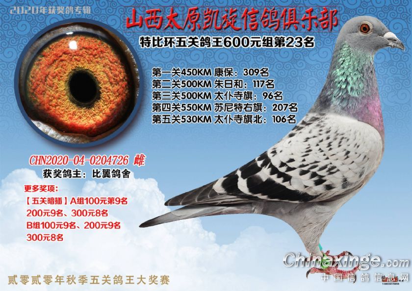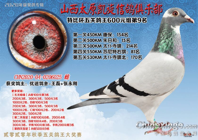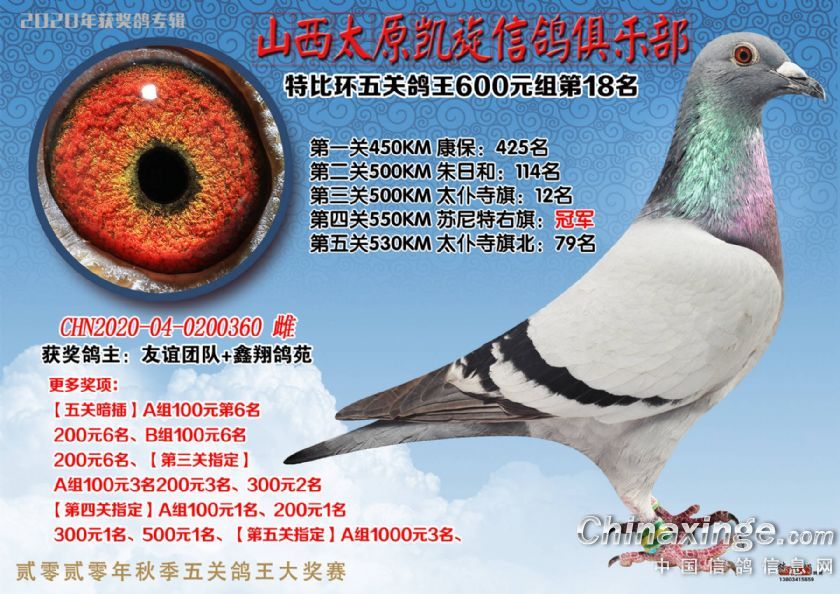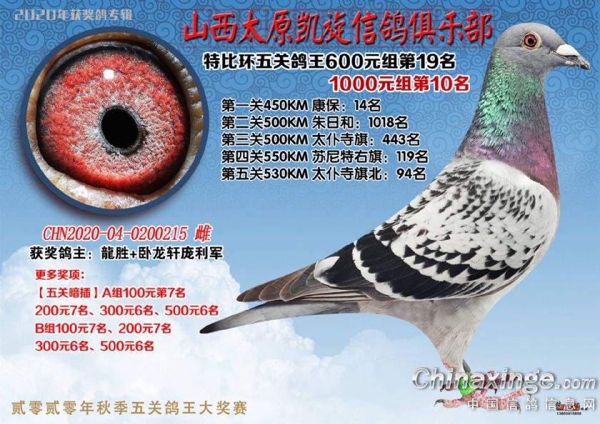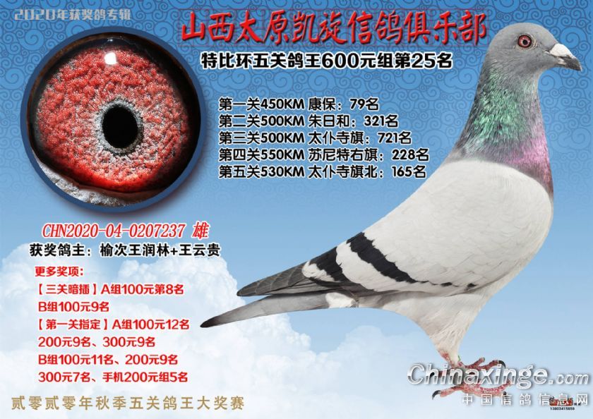 山西太原凯旋信鸽俱乐部五关特比环获奖鸽(1-25)
