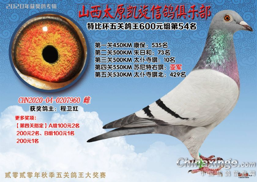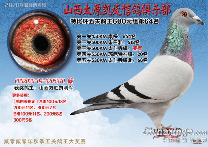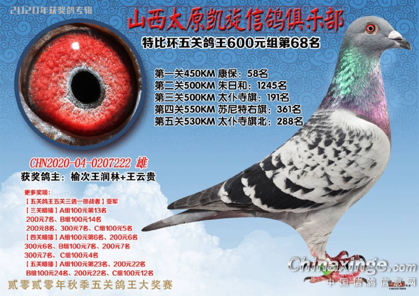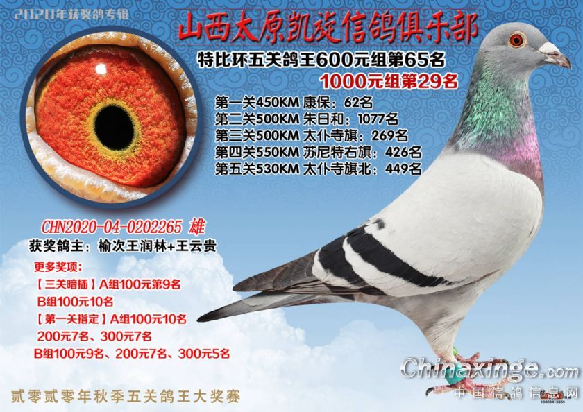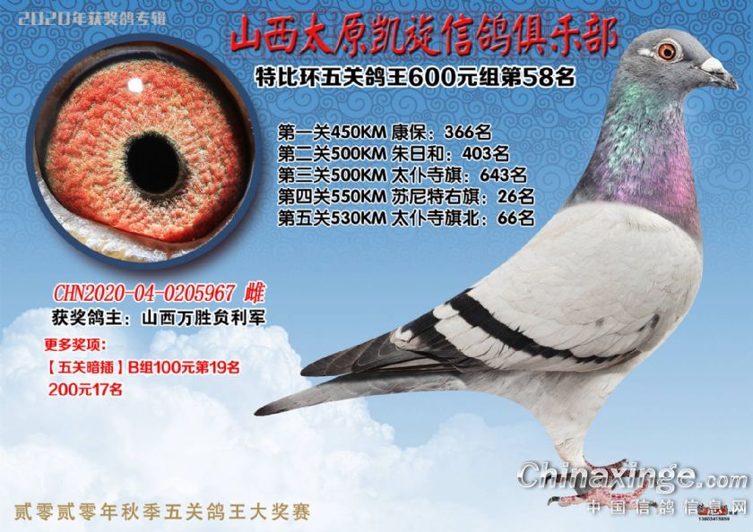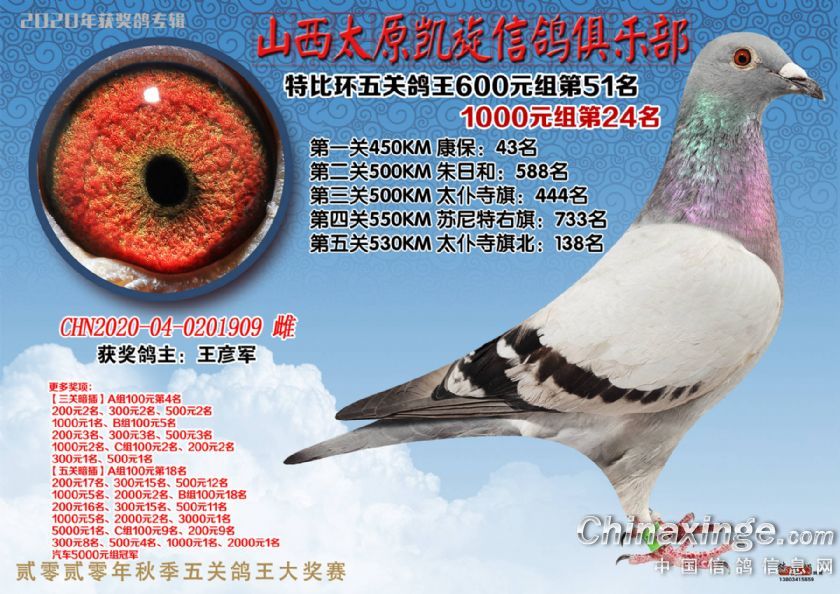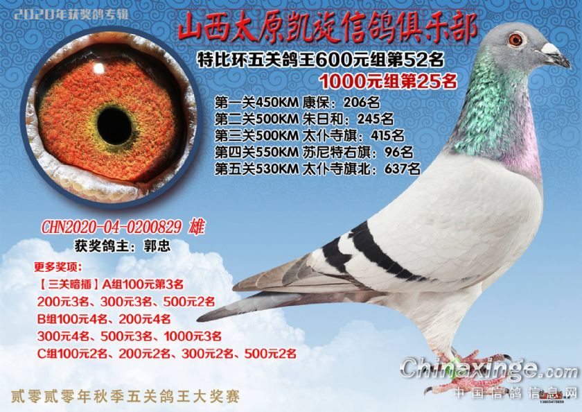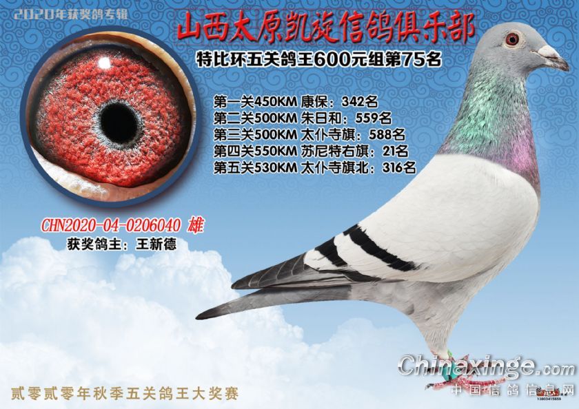 山西太原凯旋信鸽俱乐部五关特比环获奖鸽(51-75)