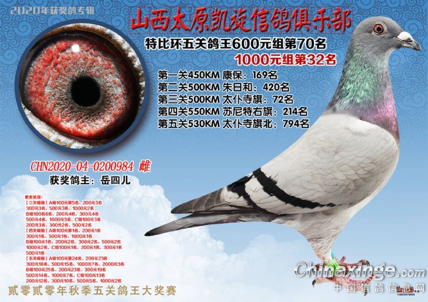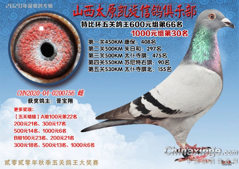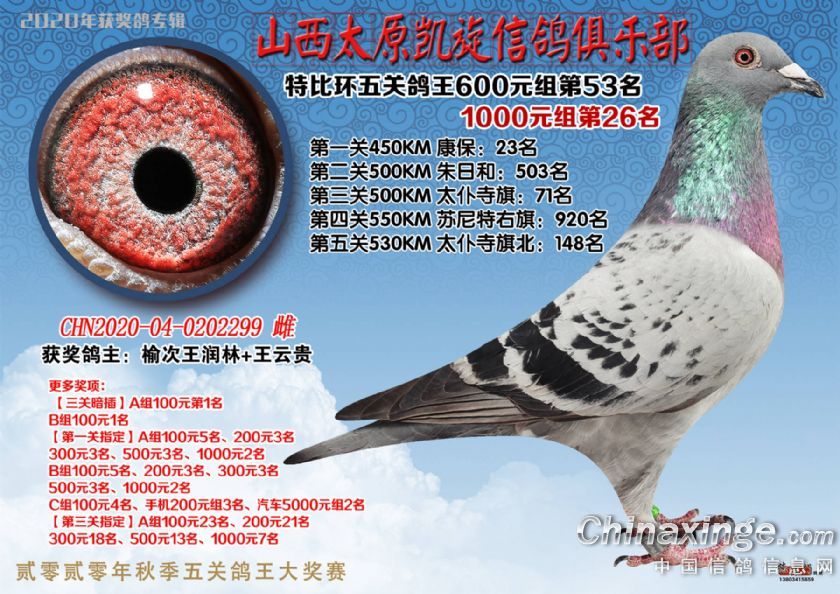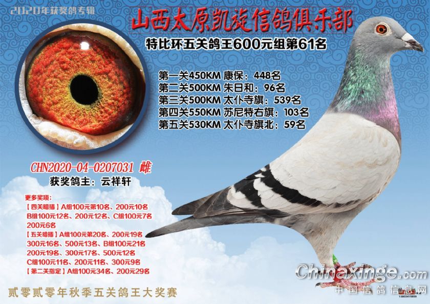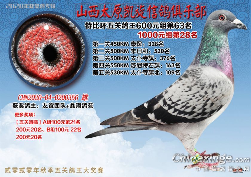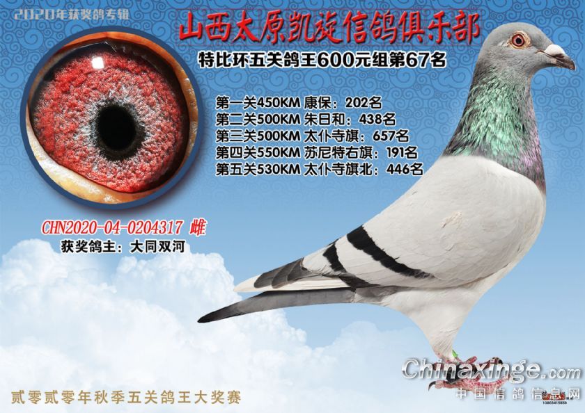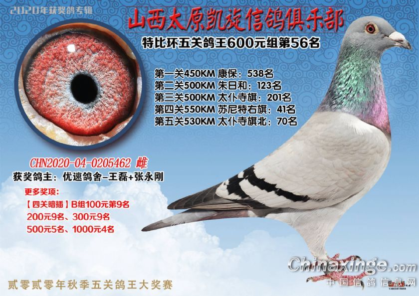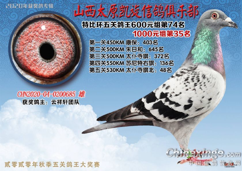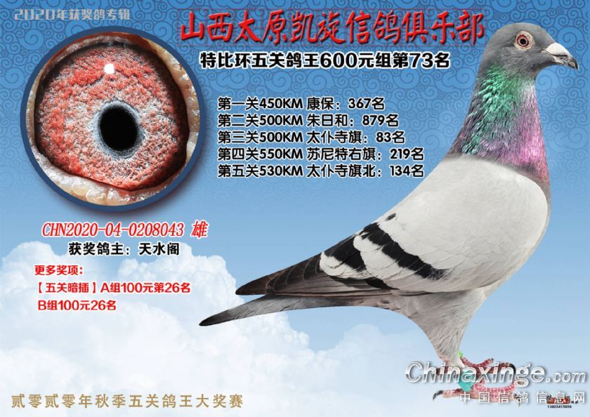山西太原凯旋信鸽俱乐部五关特比环获奖鸽(51-75)