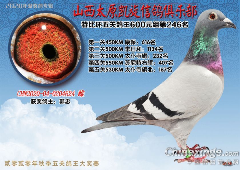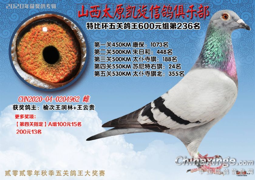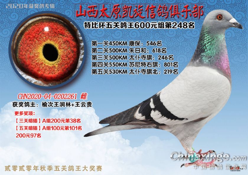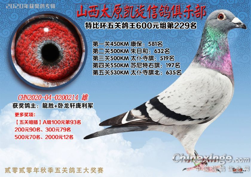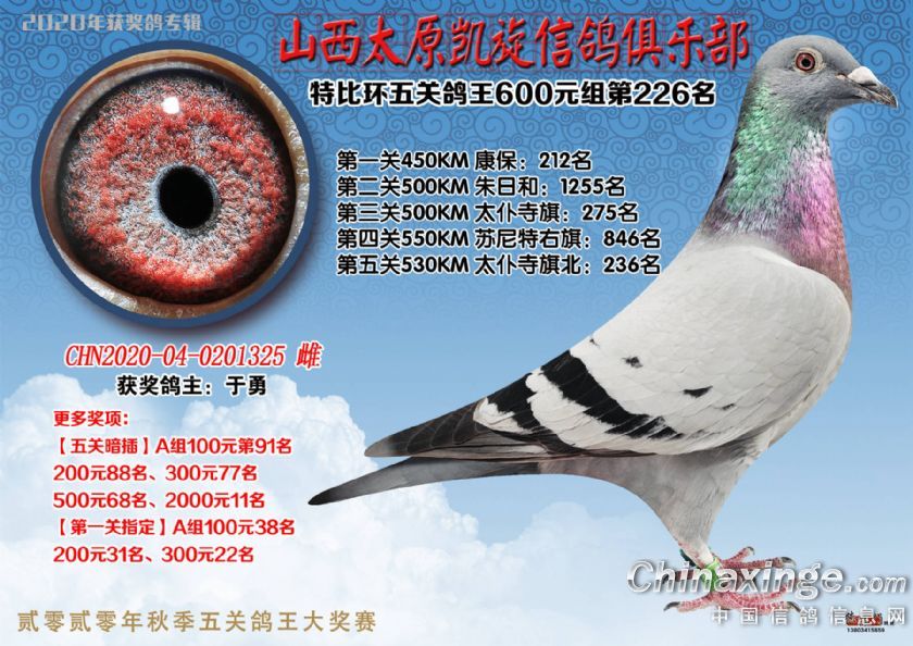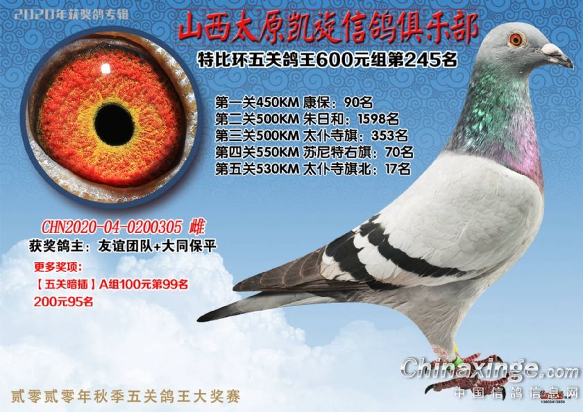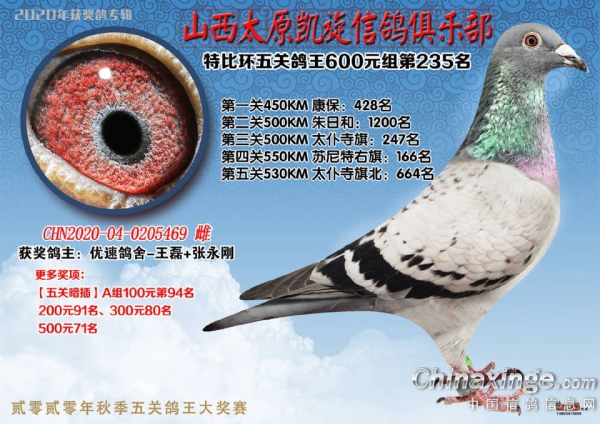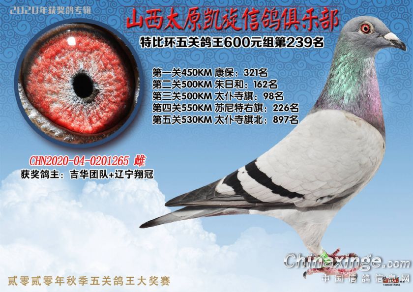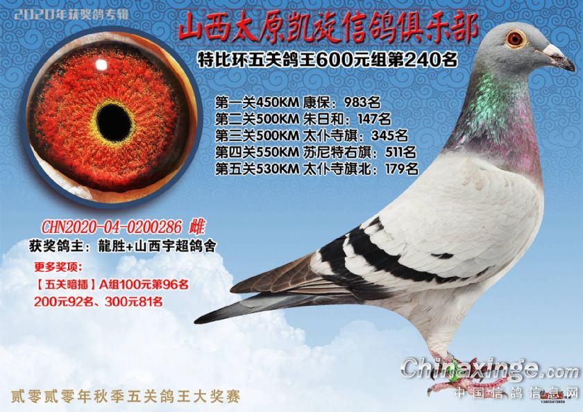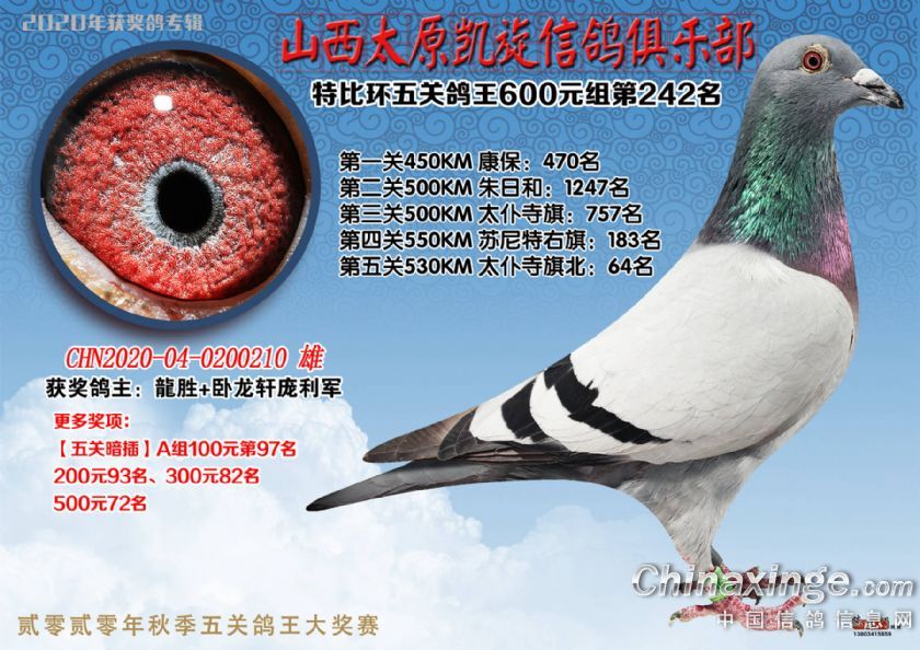 山西太原凯旋信鸽俱乐部五关特比环获奖鸽(226-250)