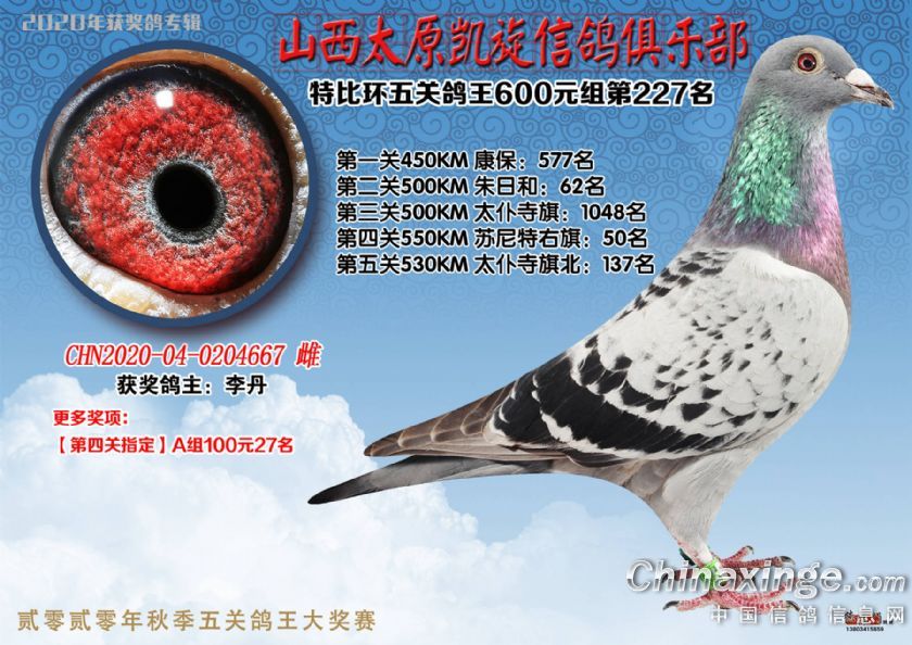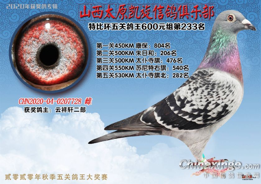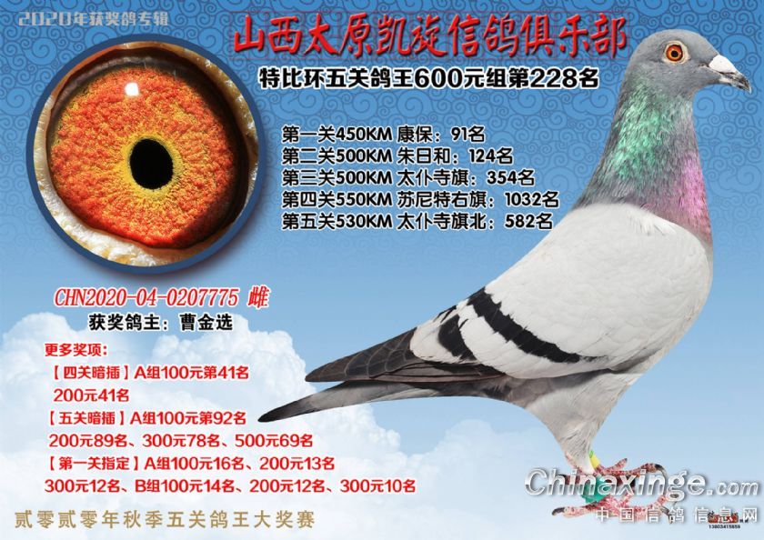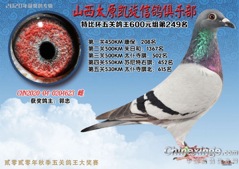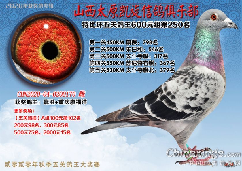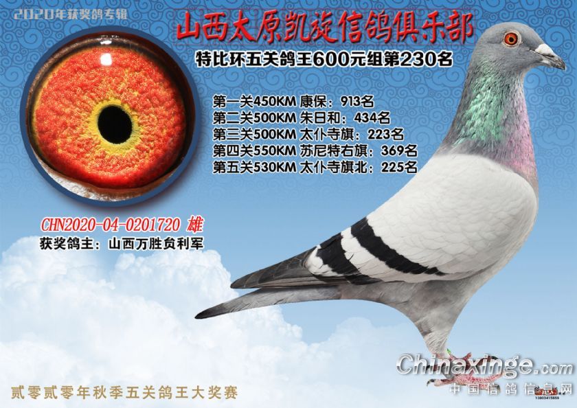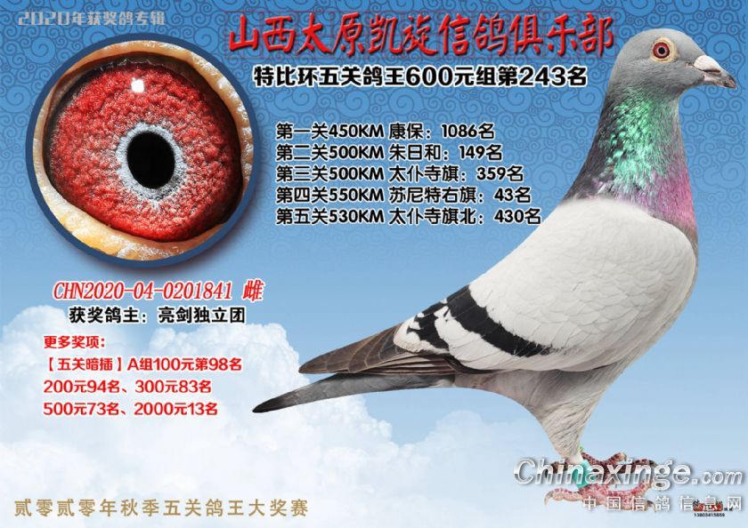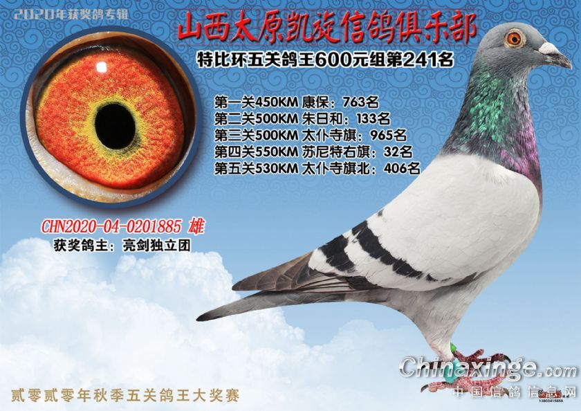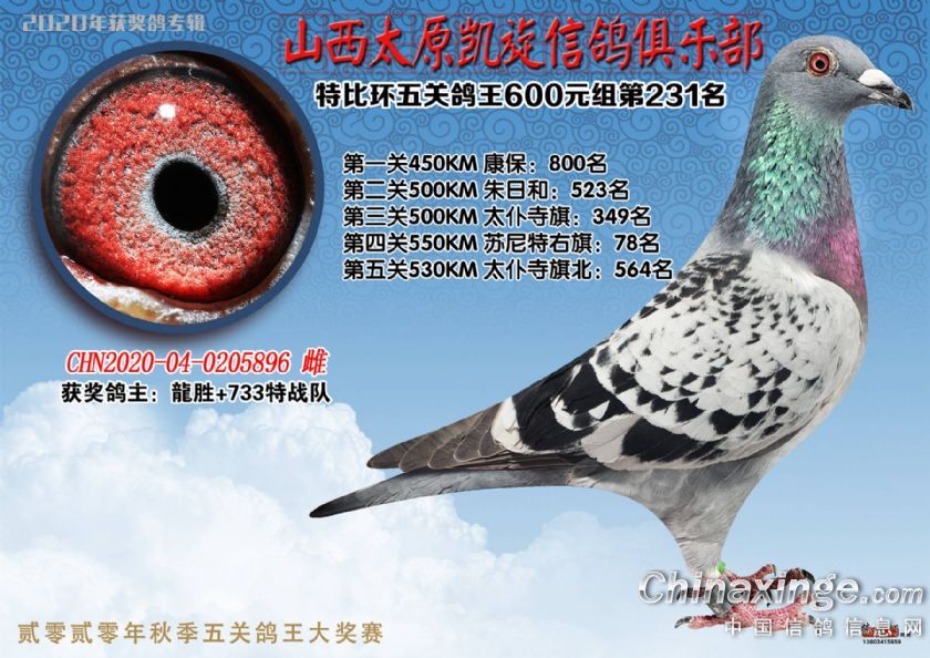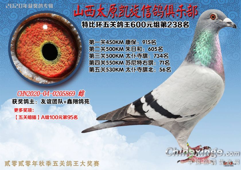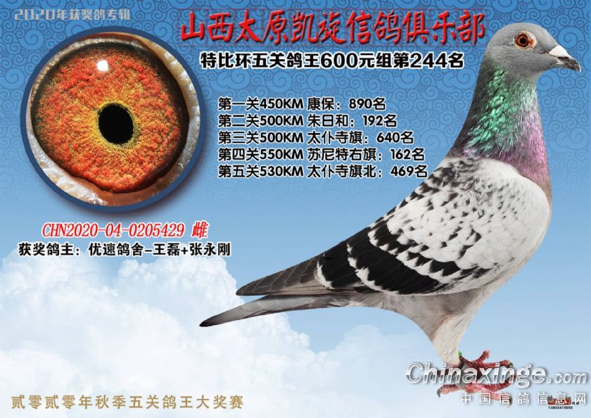 山西太原凯旋信鸽俱乐部五关特比环获奖鸽(226-250)