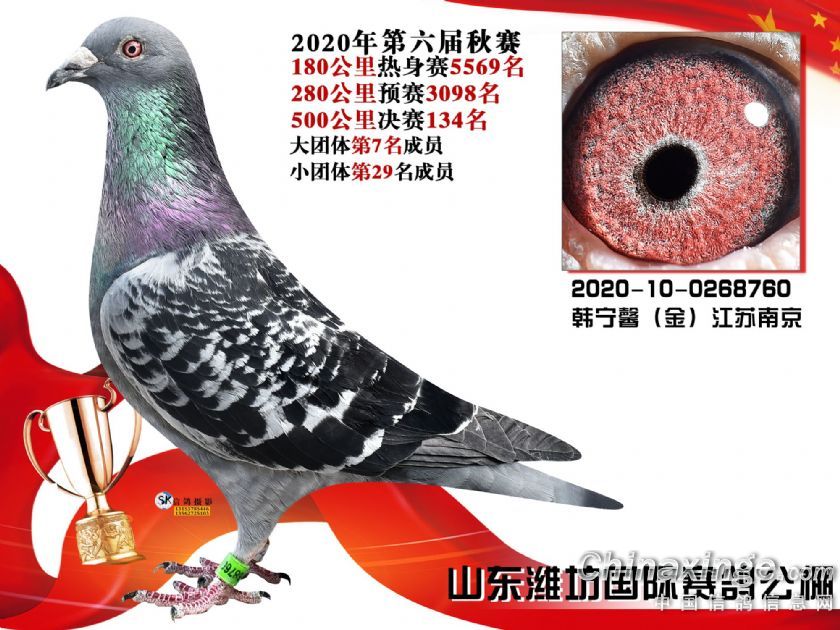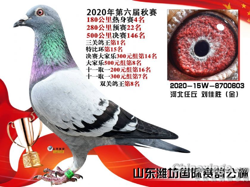 作品说明: 山东潍坊国际赛鸽121-150名获奖鸽