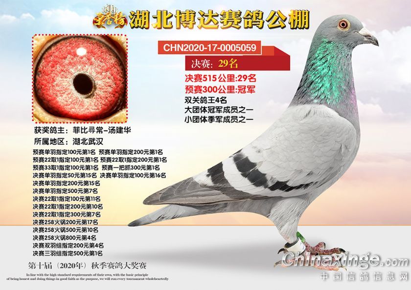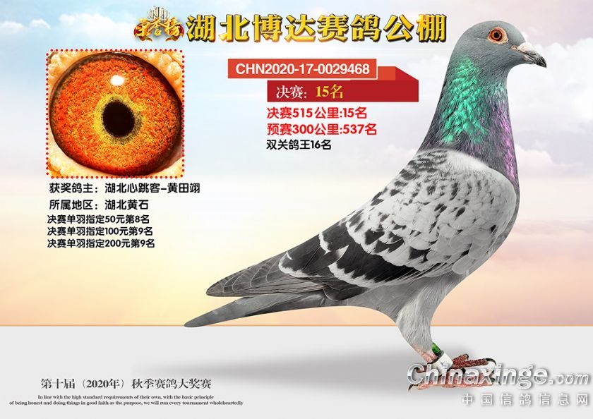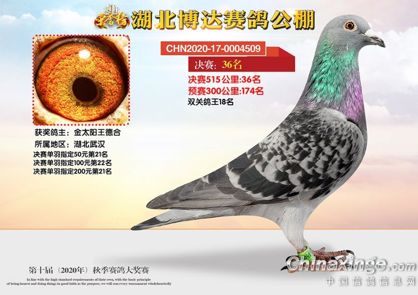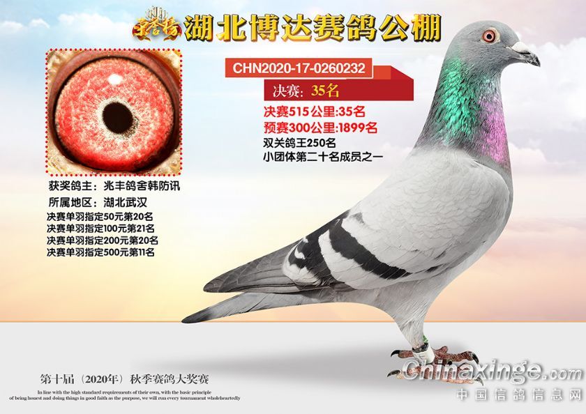 湖北博达赛鸽公棚第十届秋季奖鸽1-50名