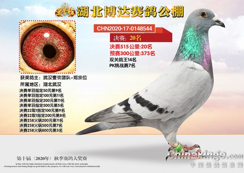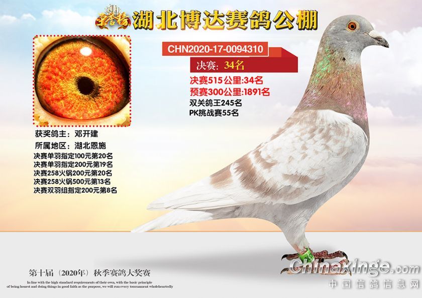 作品说明: 湖北博达赛鸽公棚第十届秋季奖鸽相片