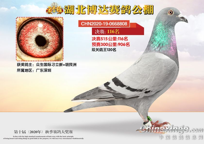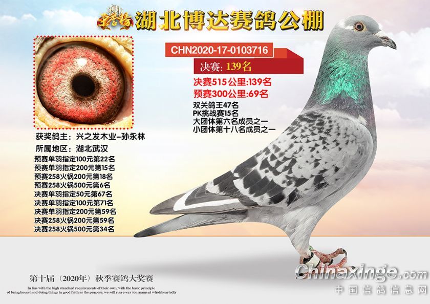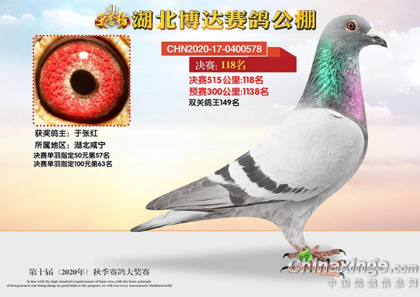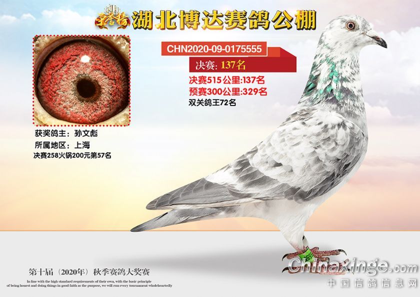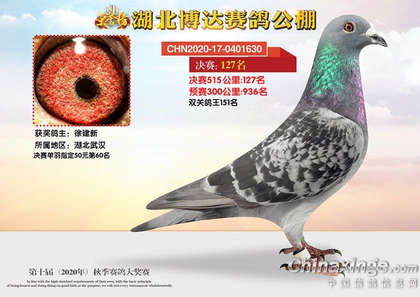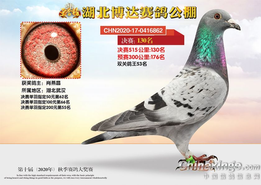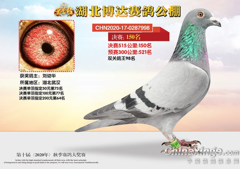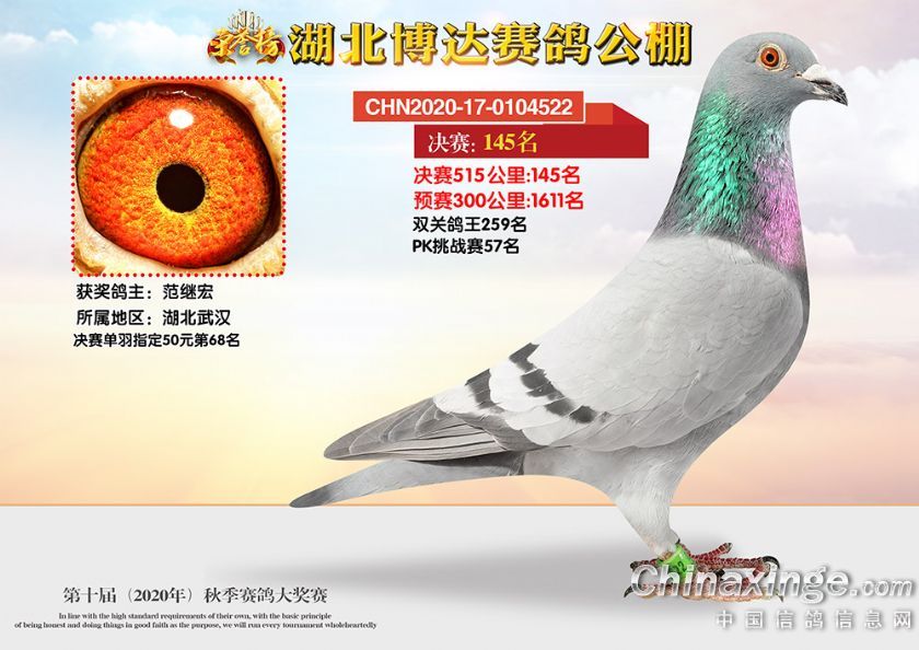 作品说明: 湖北博达赛鸽公棚第十届秋季奖鸽101-150名