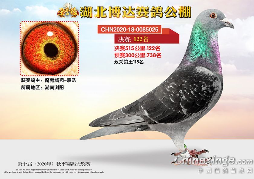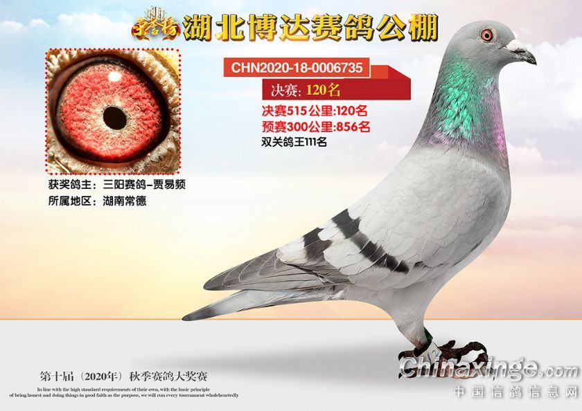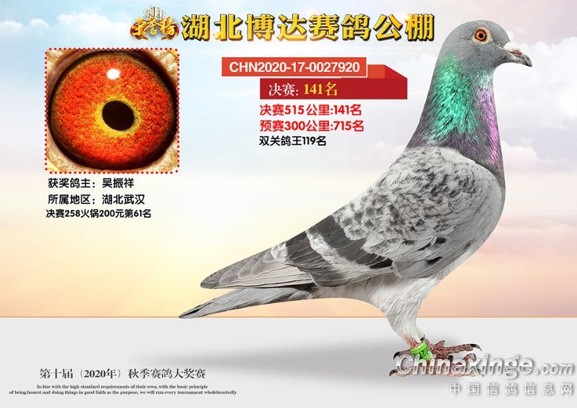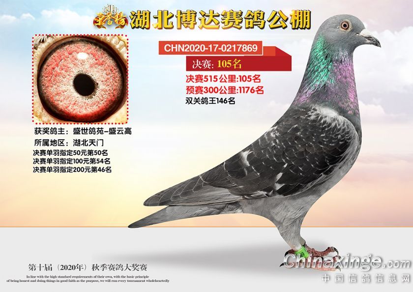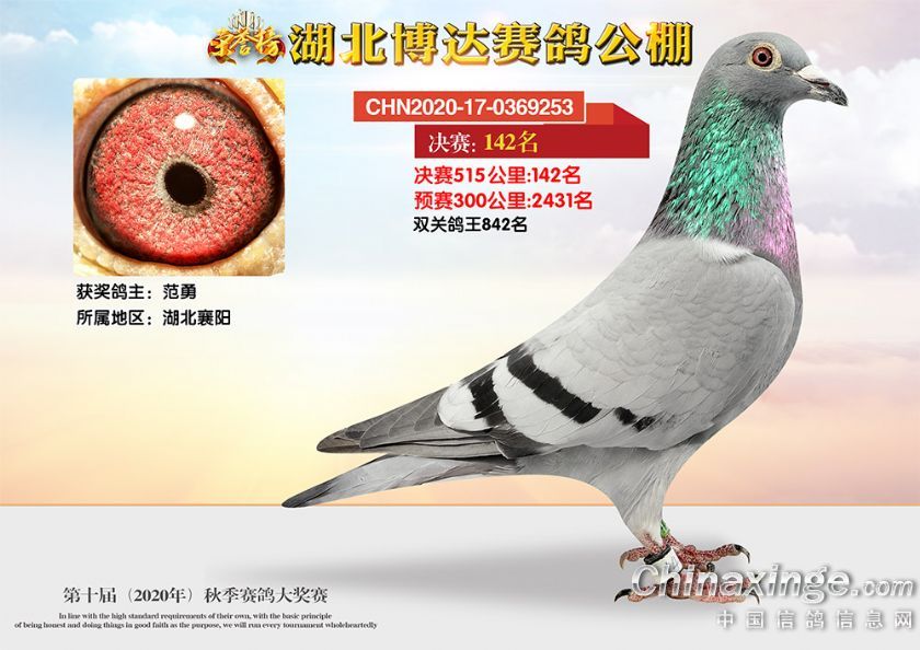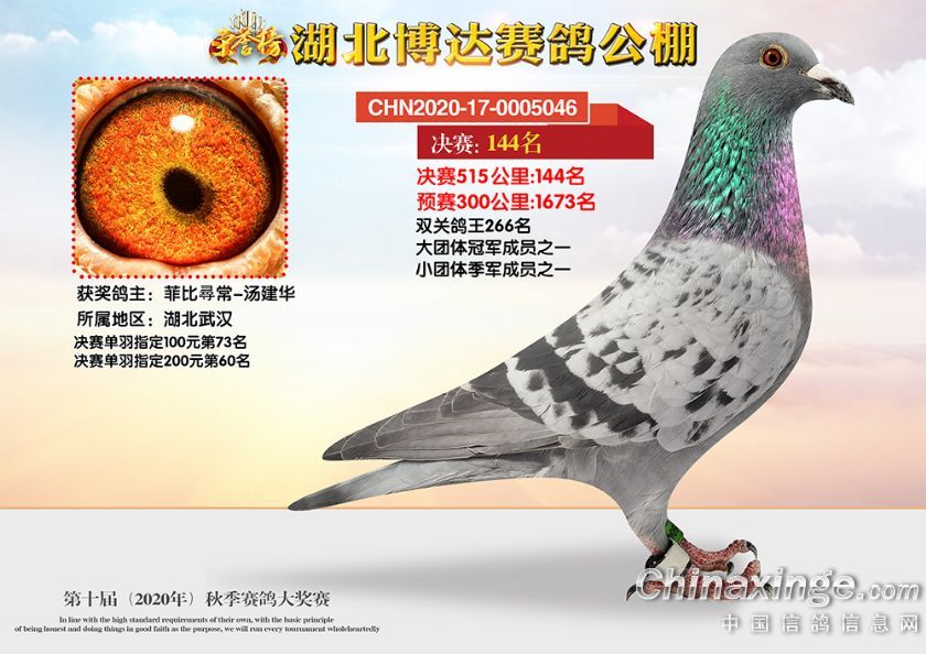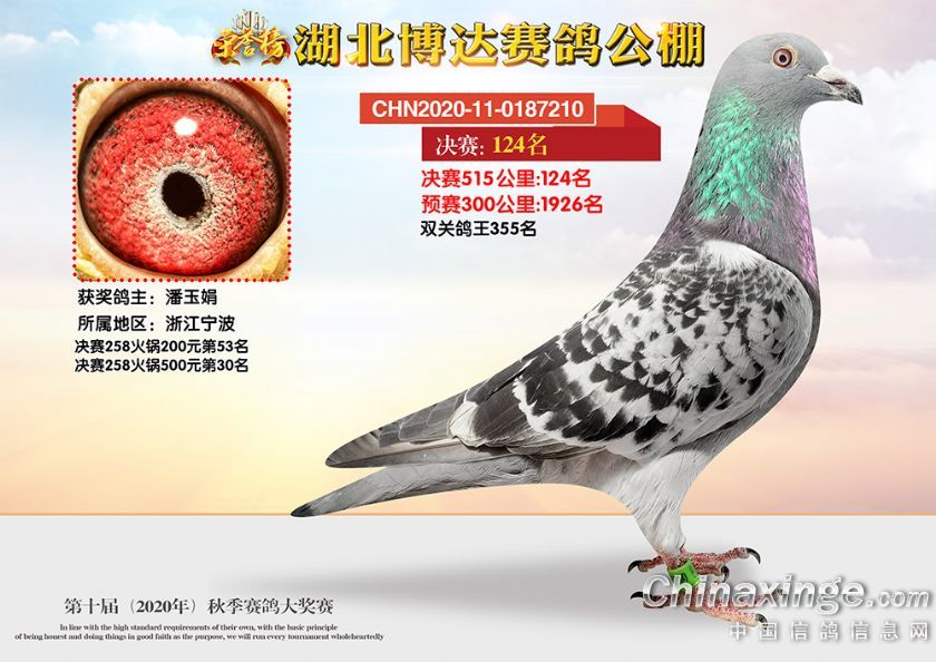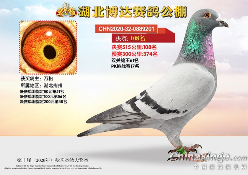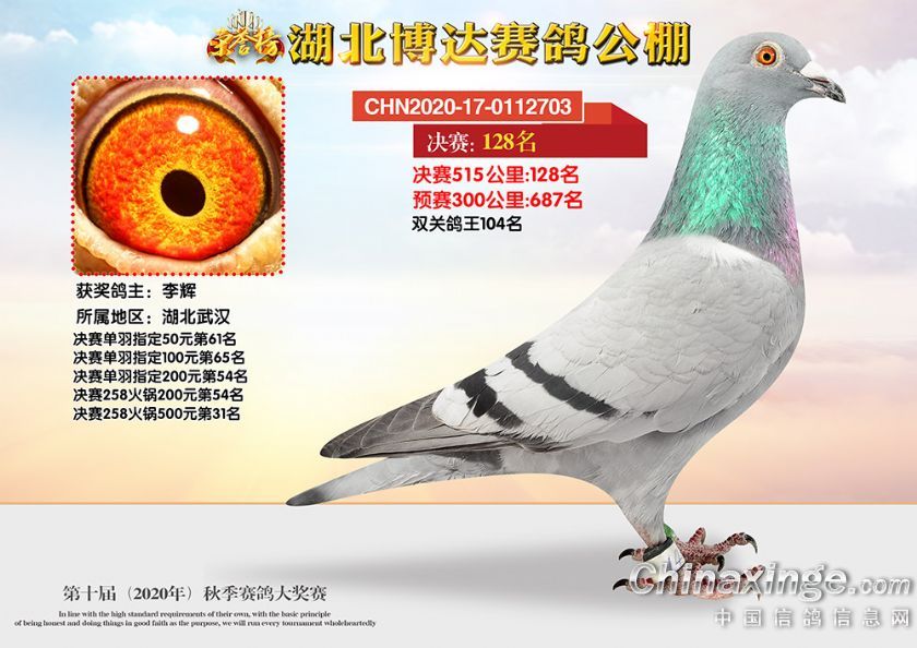 作品说明: 湖北博达赛鸽公棚第十届秋季奖鸽101-150名