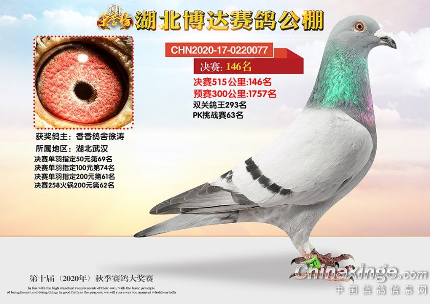 湖北博达赛鸽公棚第十届秋季奖鸽101-150名