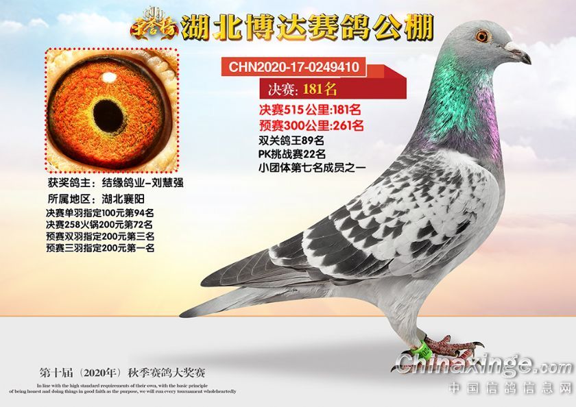 作品说明: 湖北博达赛鸽公棚第十届秋季奖鸽151-200名