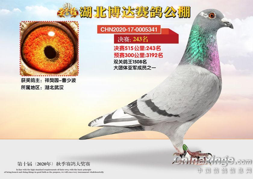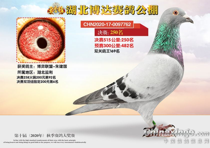 作品说明: 湖北博达赛鸽公棚第十届秋季奖鸽201-250名