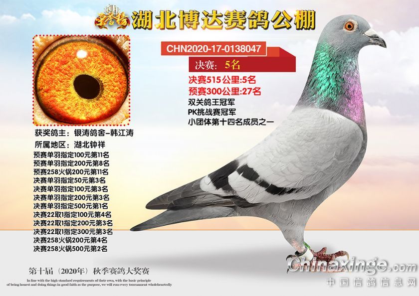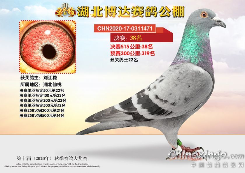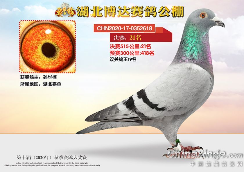 作品说明: 湖北博达赛鸽公棚第十届秋季奖鸽1-50名