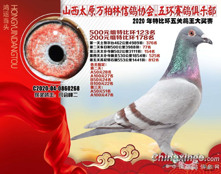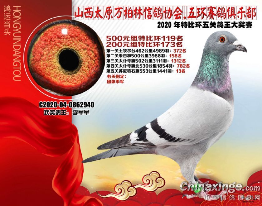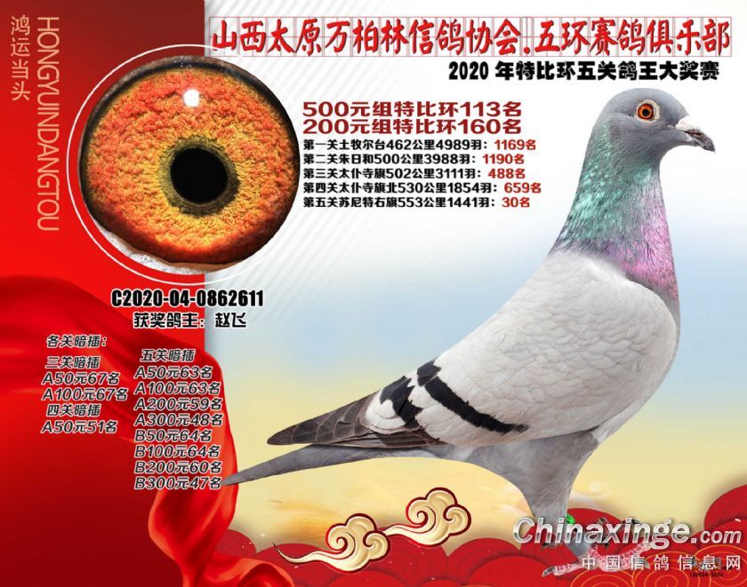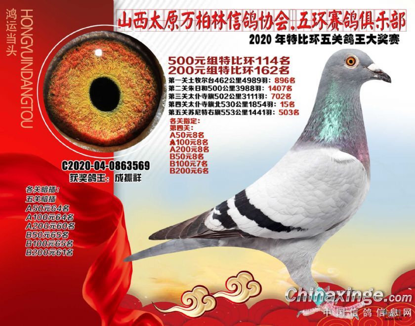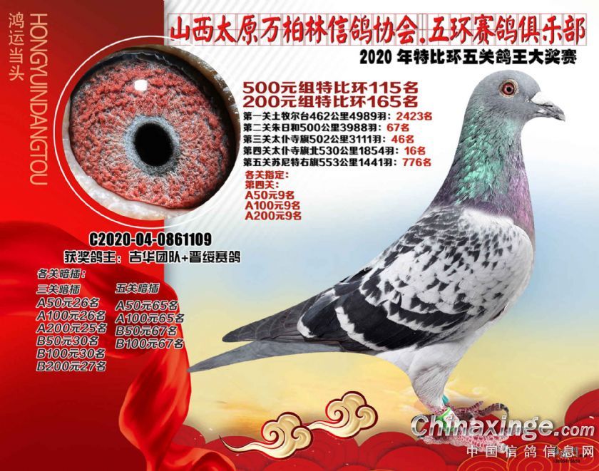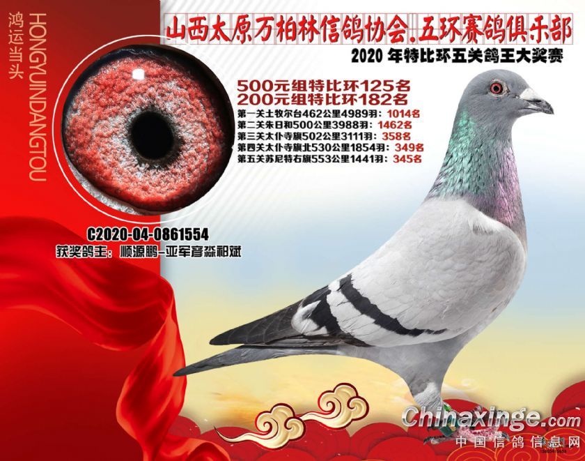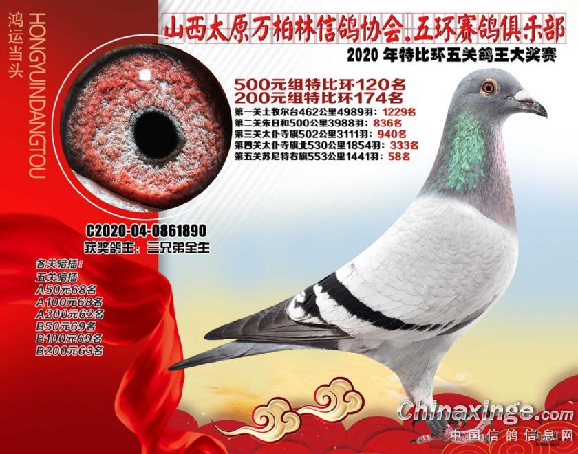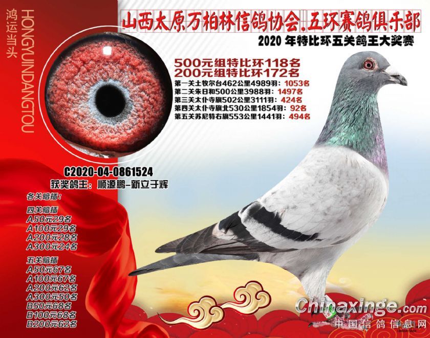 2020年万柏林鸽会特比五关鸽王获奖鸽500元组101-125