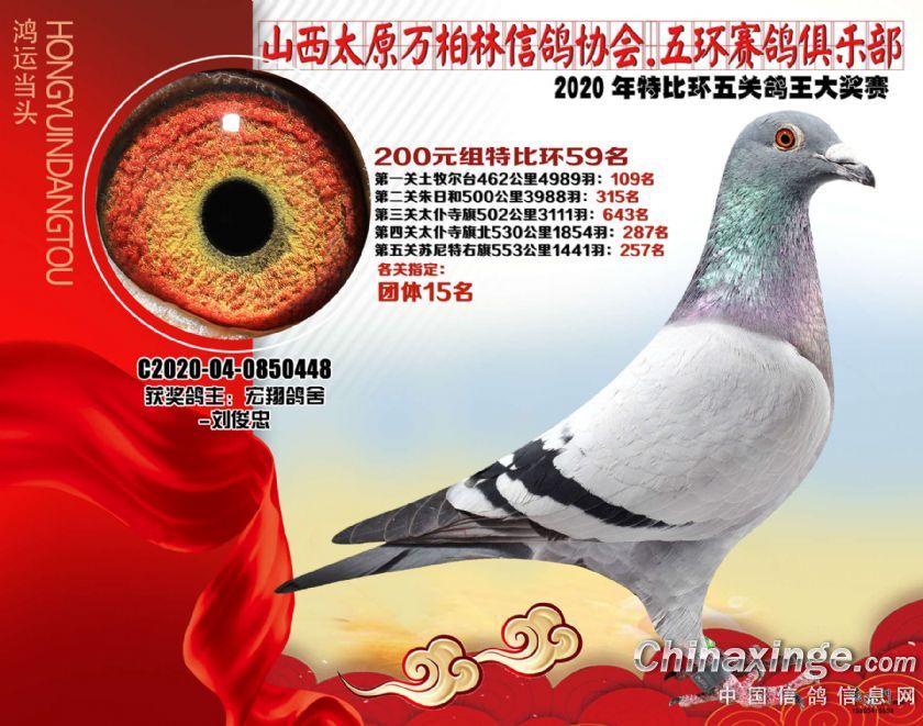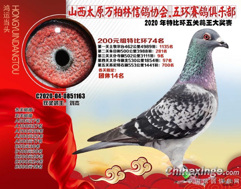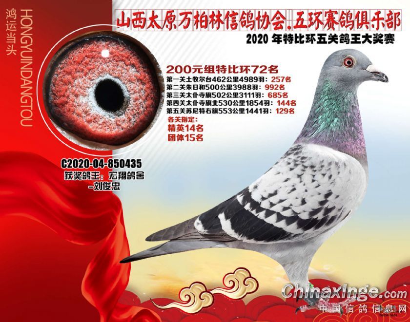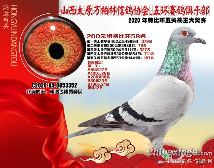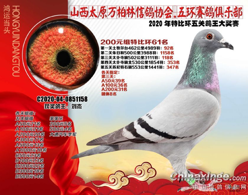 2020年万柏林鸽会特比五关鸽王获奖鸽200元组51-75