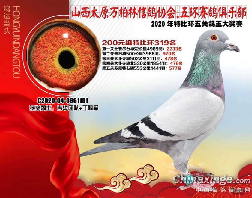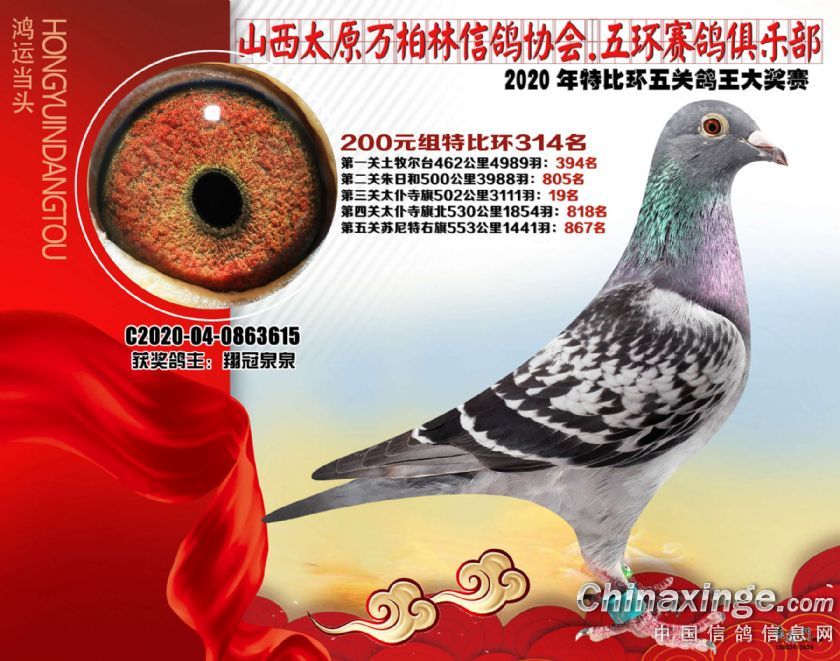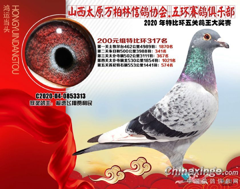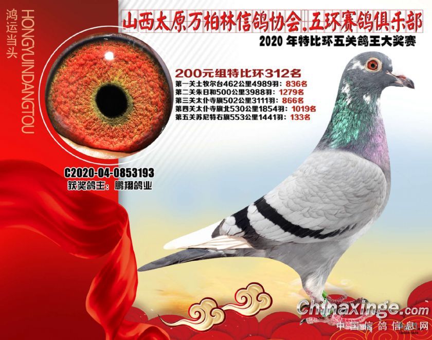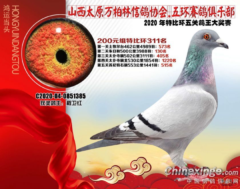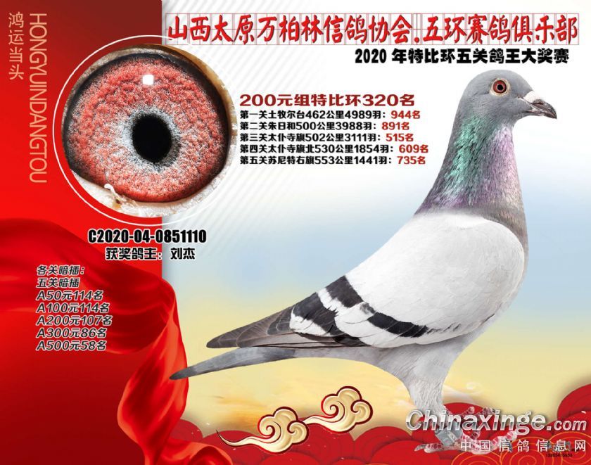 2020年万柏林鸽会特比五关鸽王获奖鸽200元组301-325