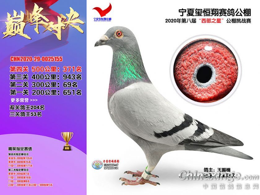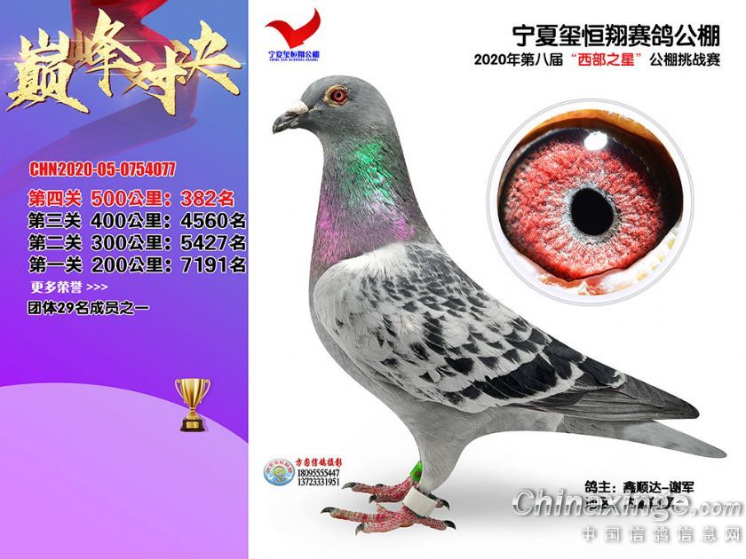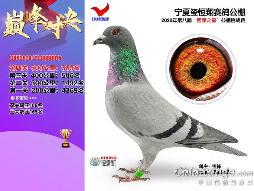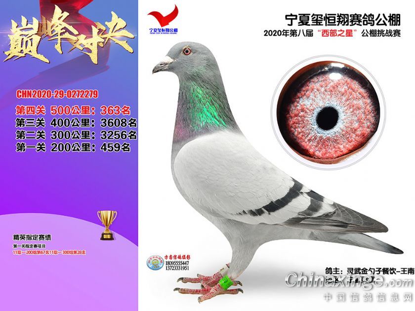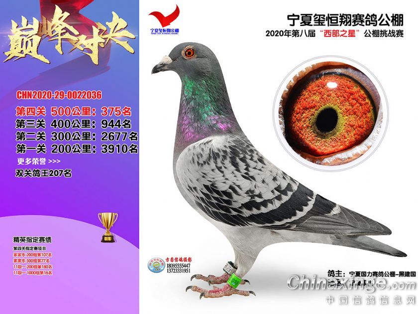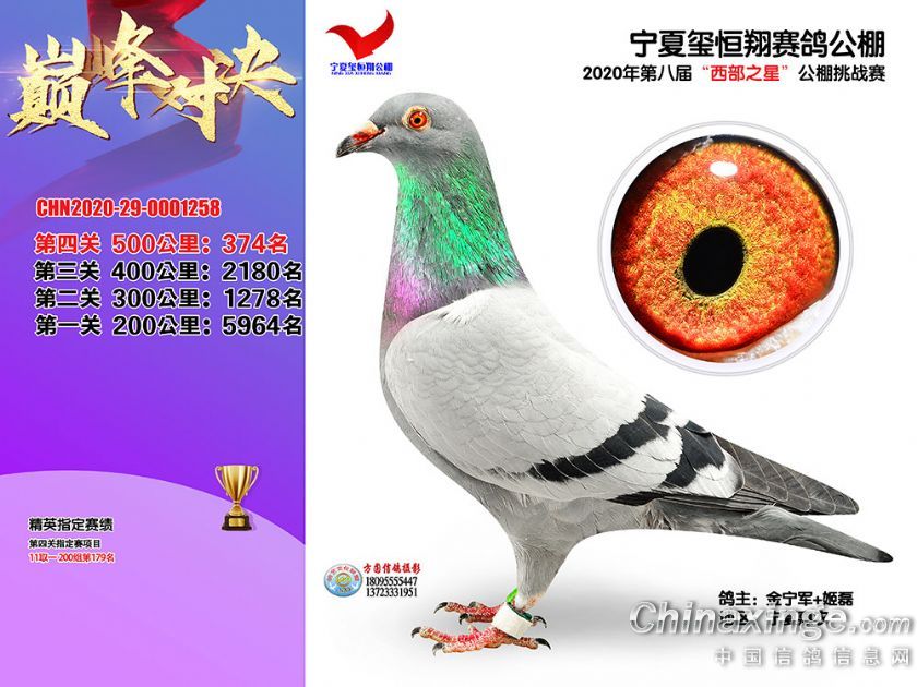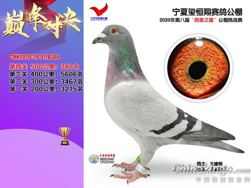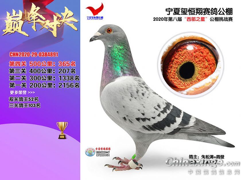 作品说明: 2020年秋季宁夏玺恒翔赛鸽公棚决赛获奖鸽照片361-390