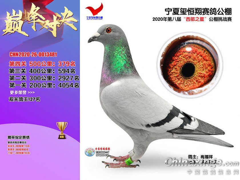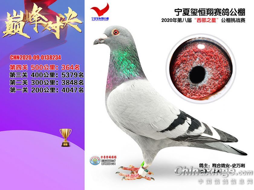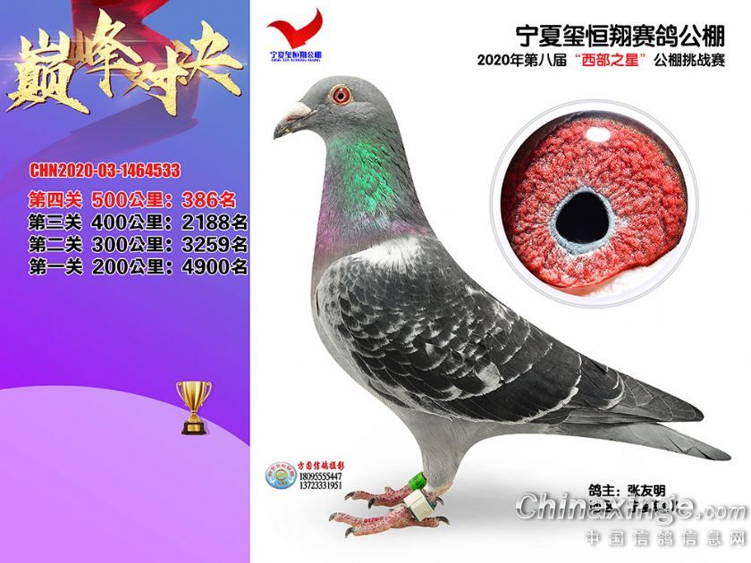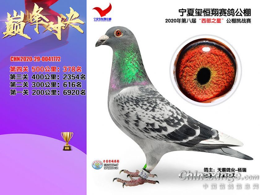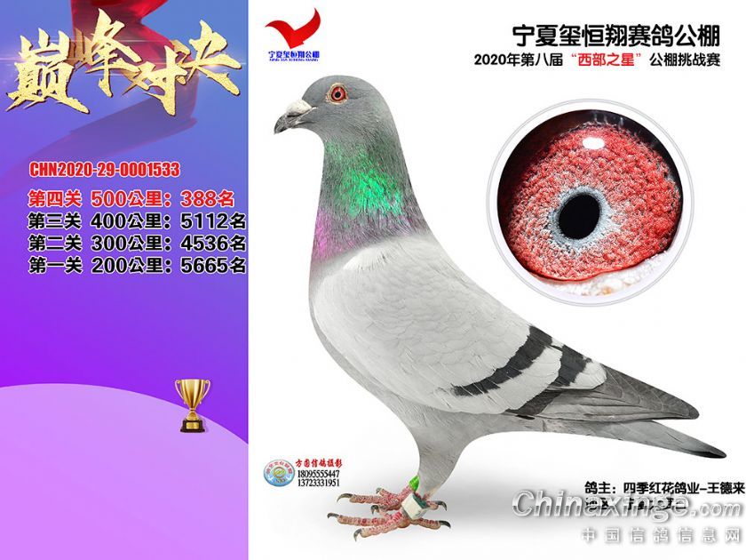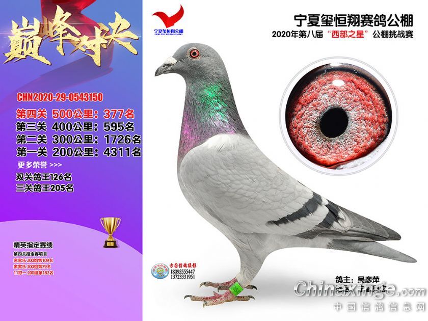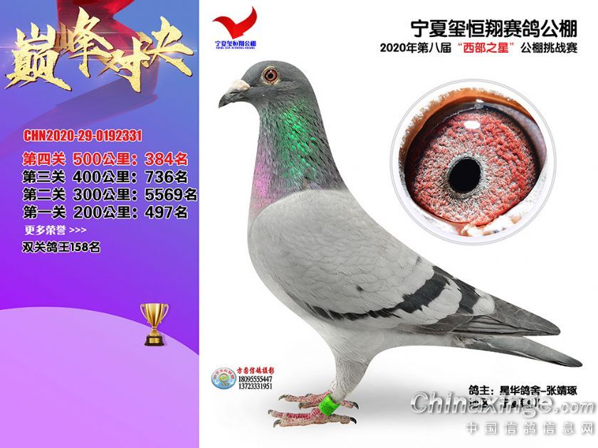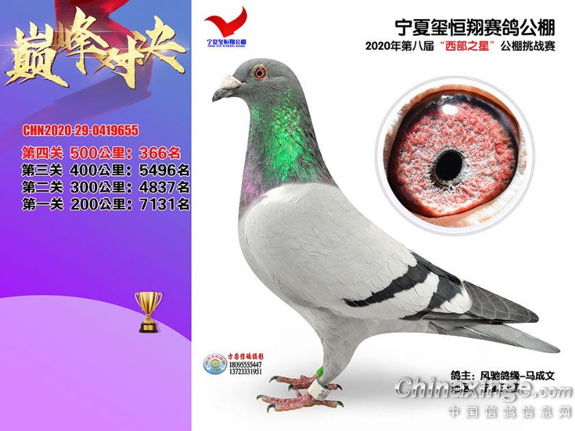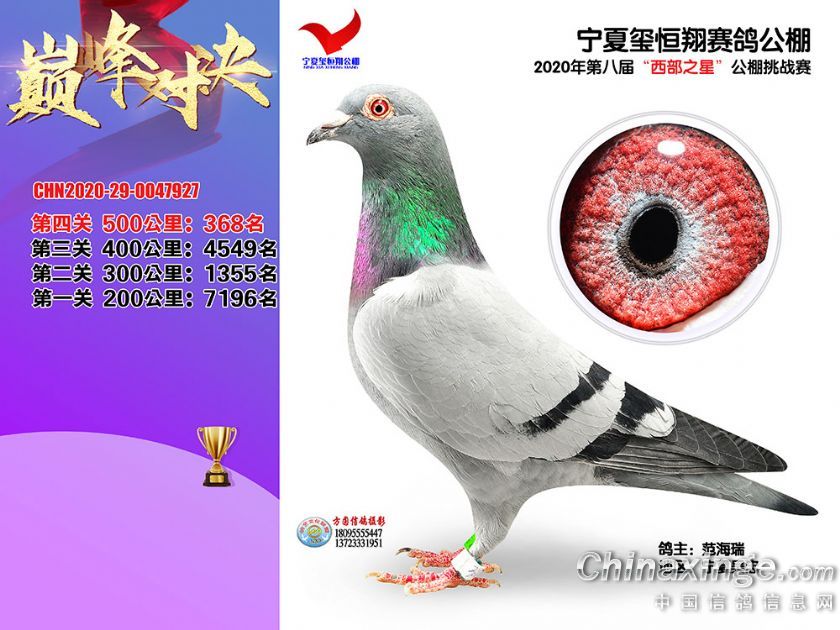 作品说明: 2020年秋季宁夏玺恒翔赛鸽公棚决赛获奖鸽照片361-390