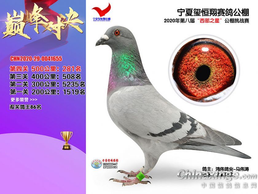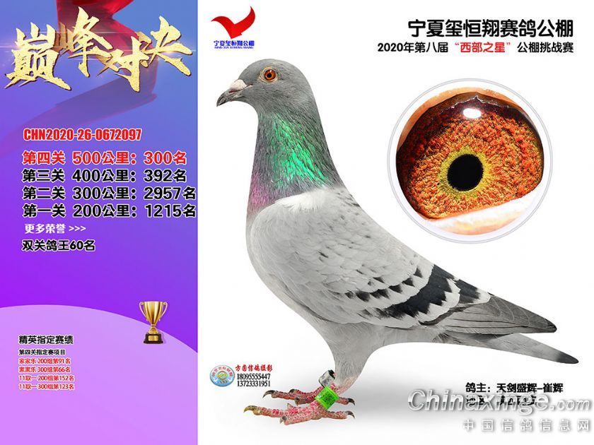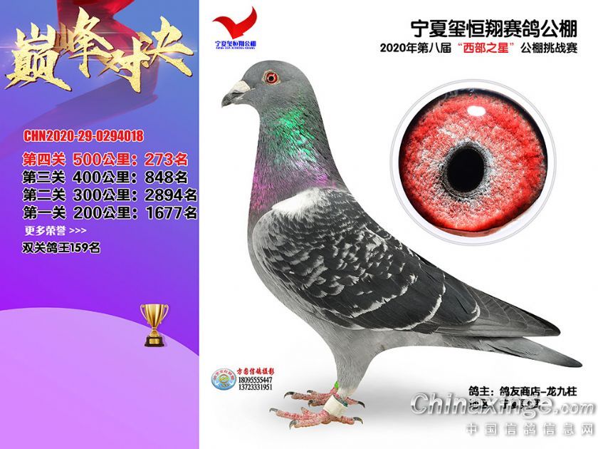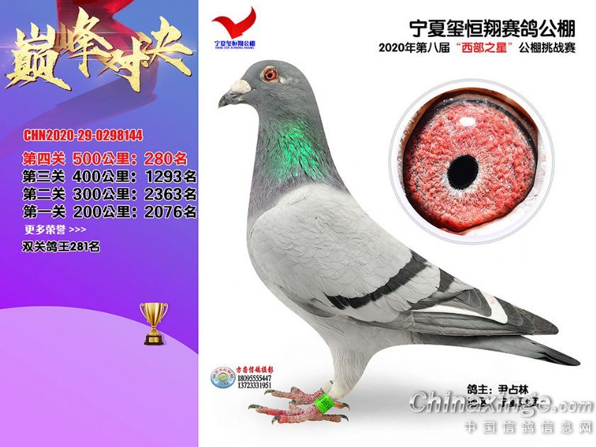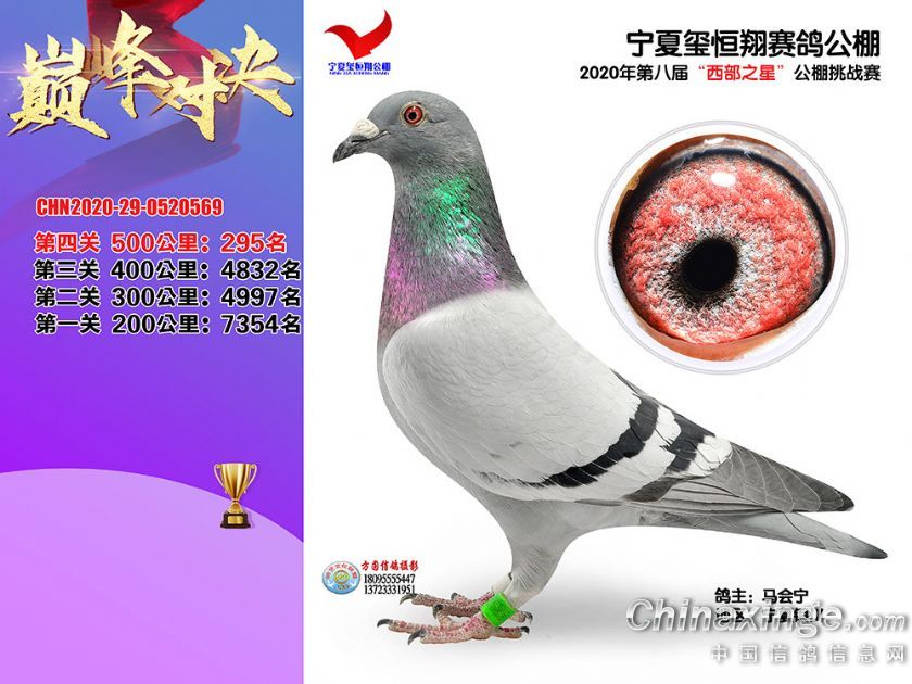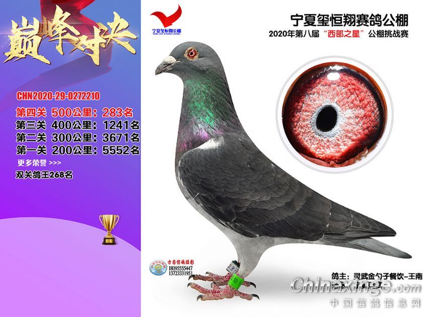 作品说明: 2020年秋季宁夏玺恒翔赛鸽公棚决赛获奖鸽照片271-300