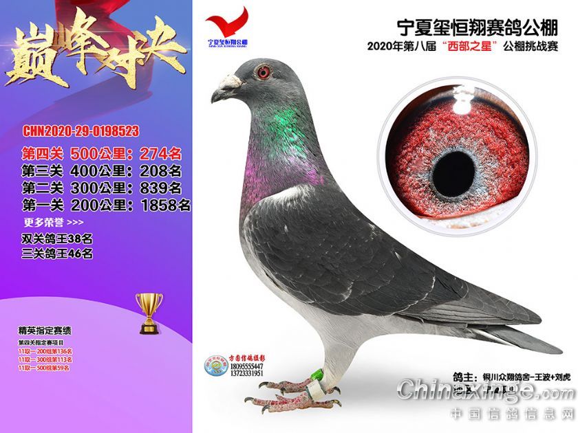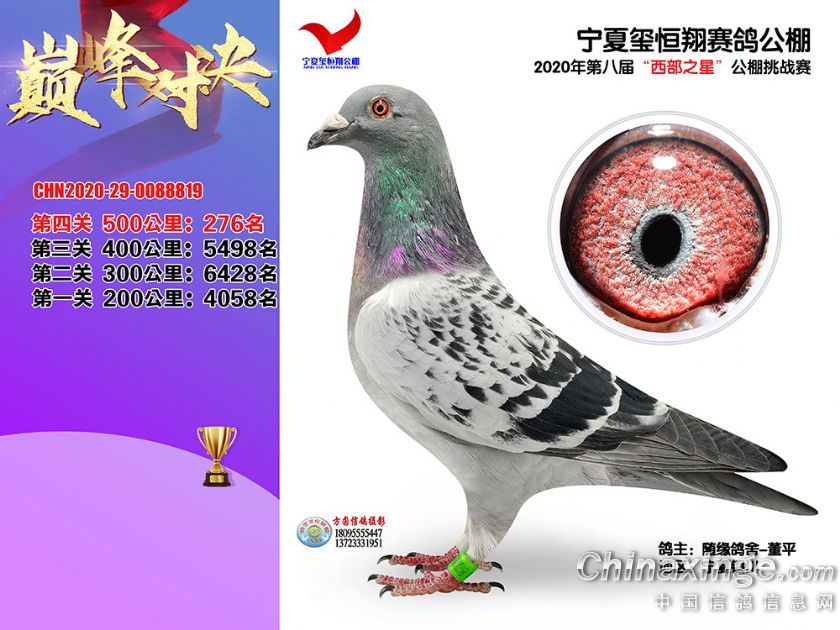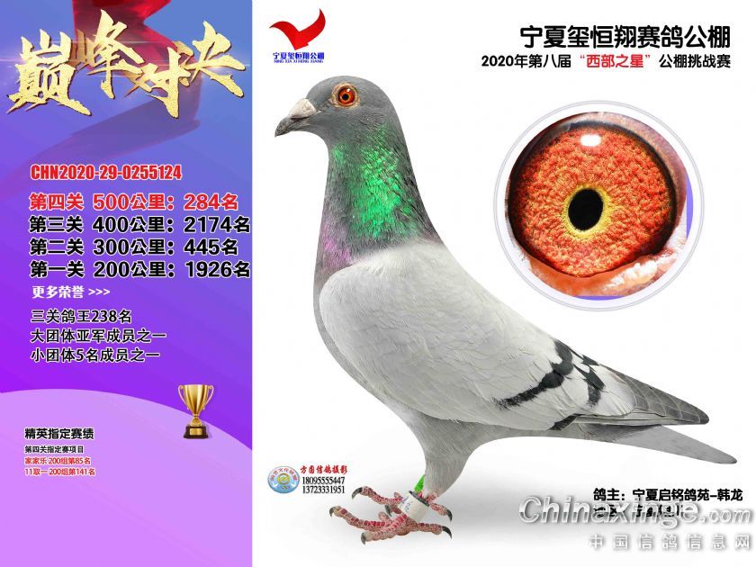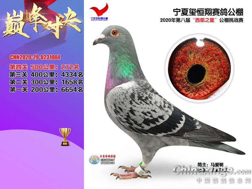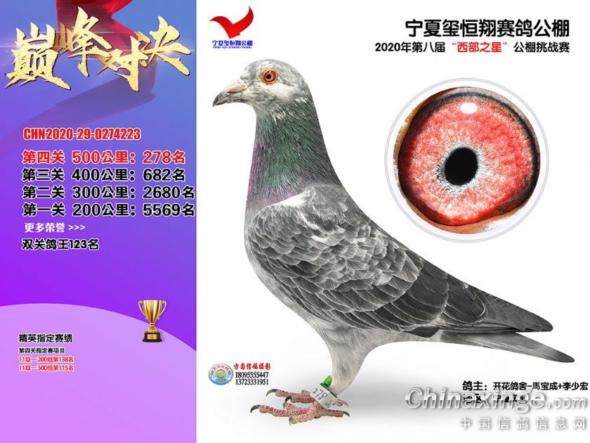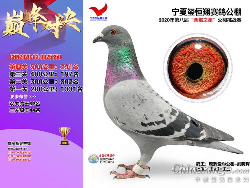 作品说明: 2020年秋季宁夏玺恒翔赛鸽公棚决赛获奖鸽照片271-300