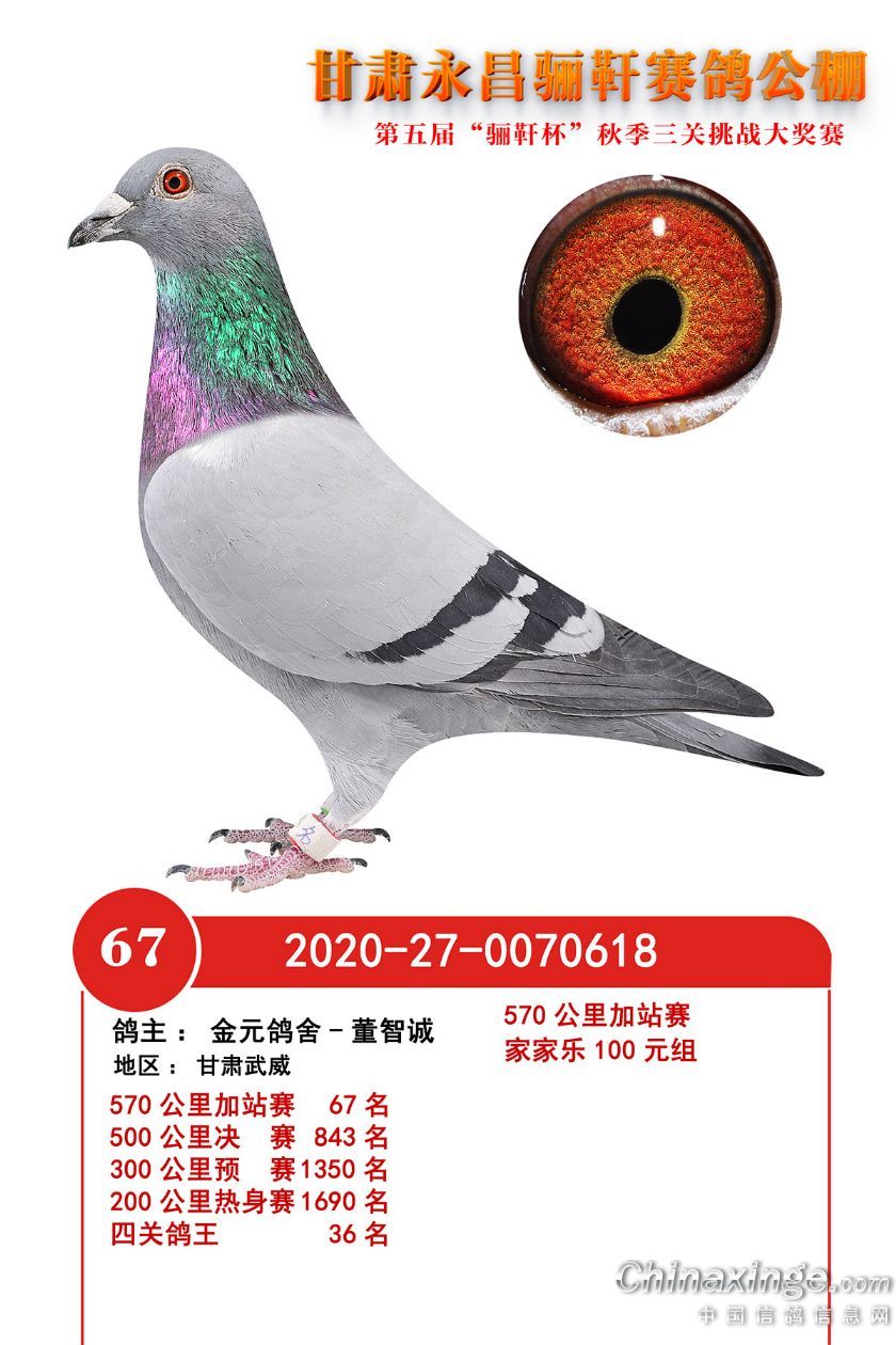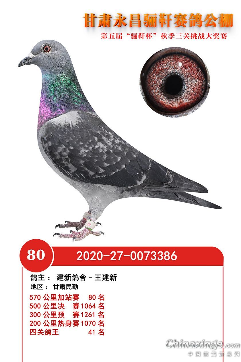 甘肃永昌骊靬赛鸽公棚570公里加强赛1-80名