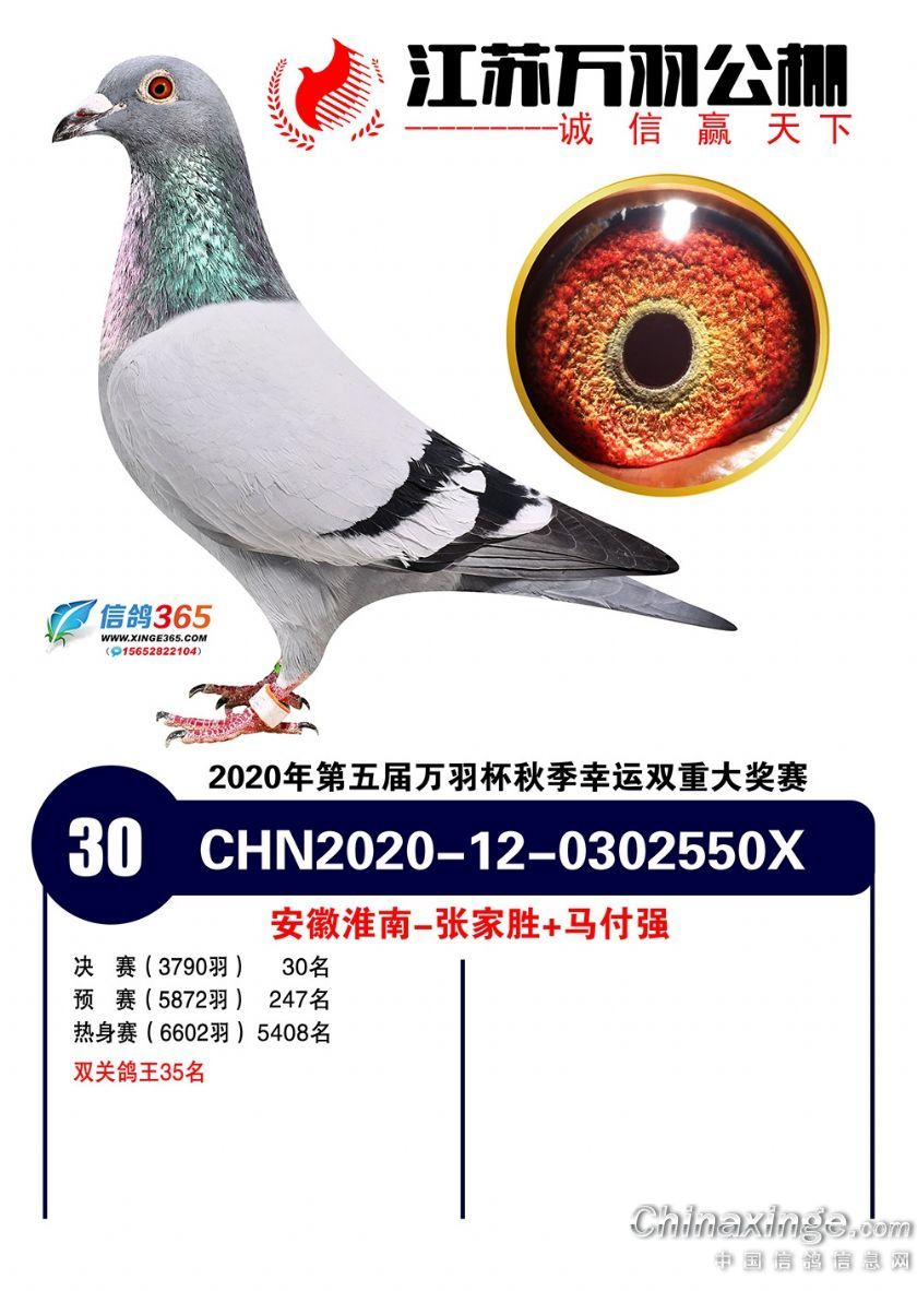 作品说明: 江苏万羽赛鸽公棚2020年决赛获奖鸽1-30名