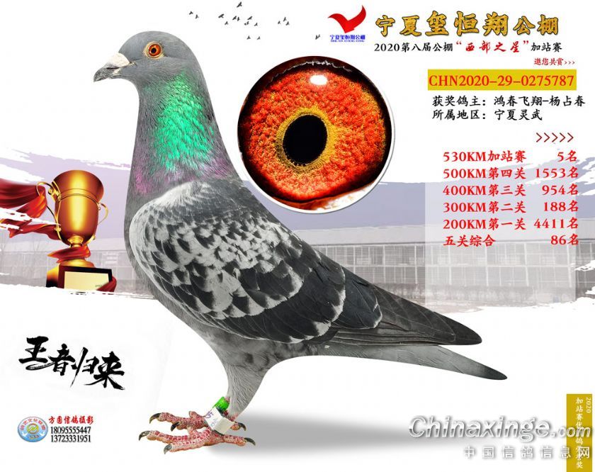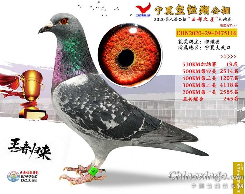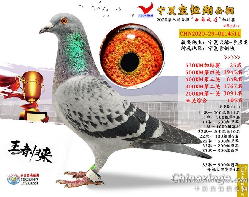 2020年宁夏玺恒翔赛鸽公棚加站赛获奖鸽照片1-30
