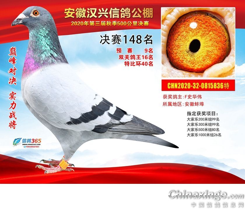 作品说明: 安徽汉兴公棚2020年决赛获奖鸽121-150