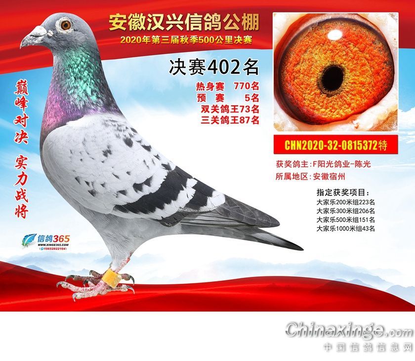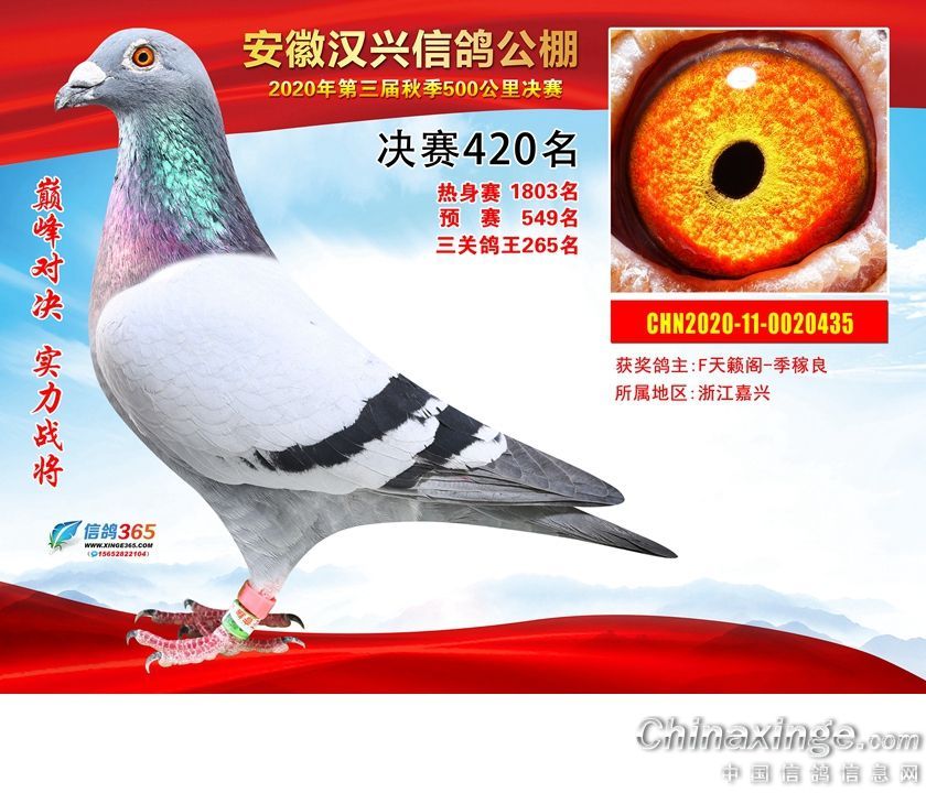 安徽汉兴公棚2020年决赛获奖鸽391-420