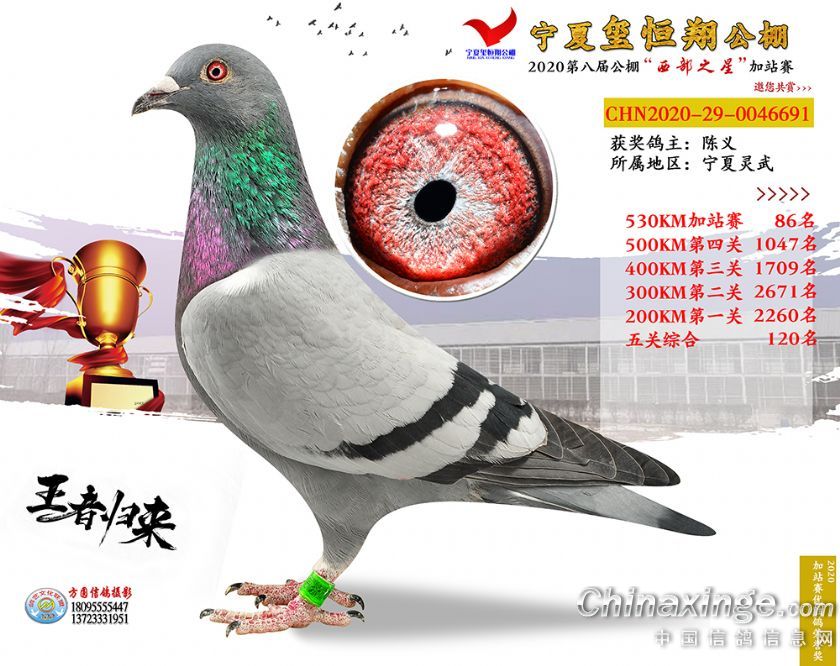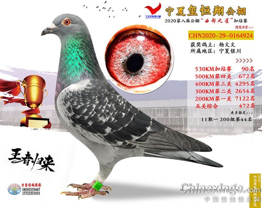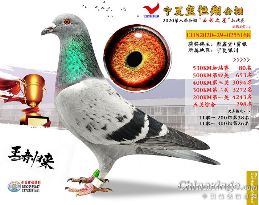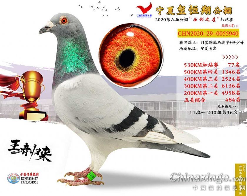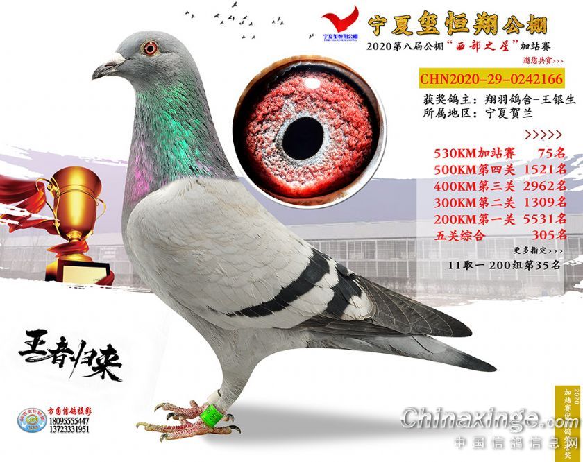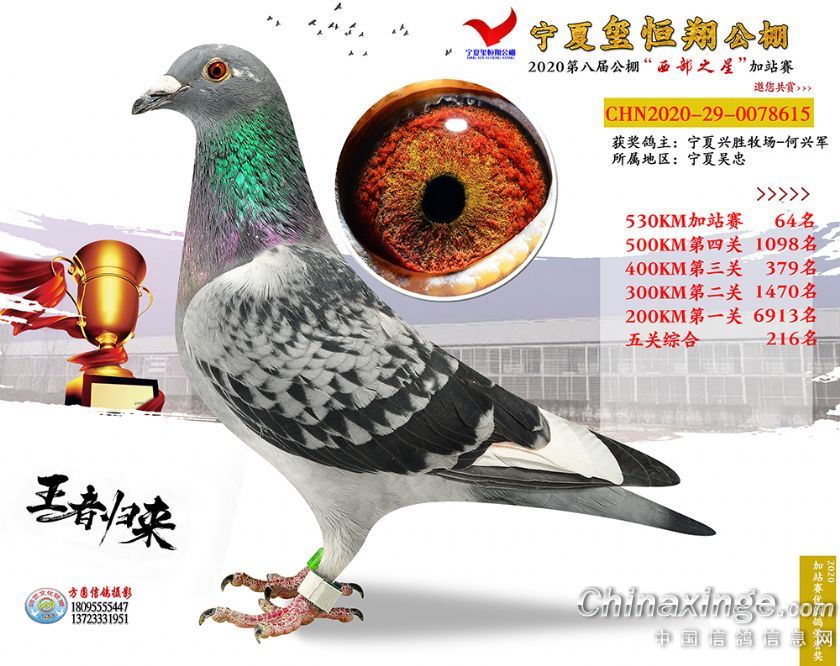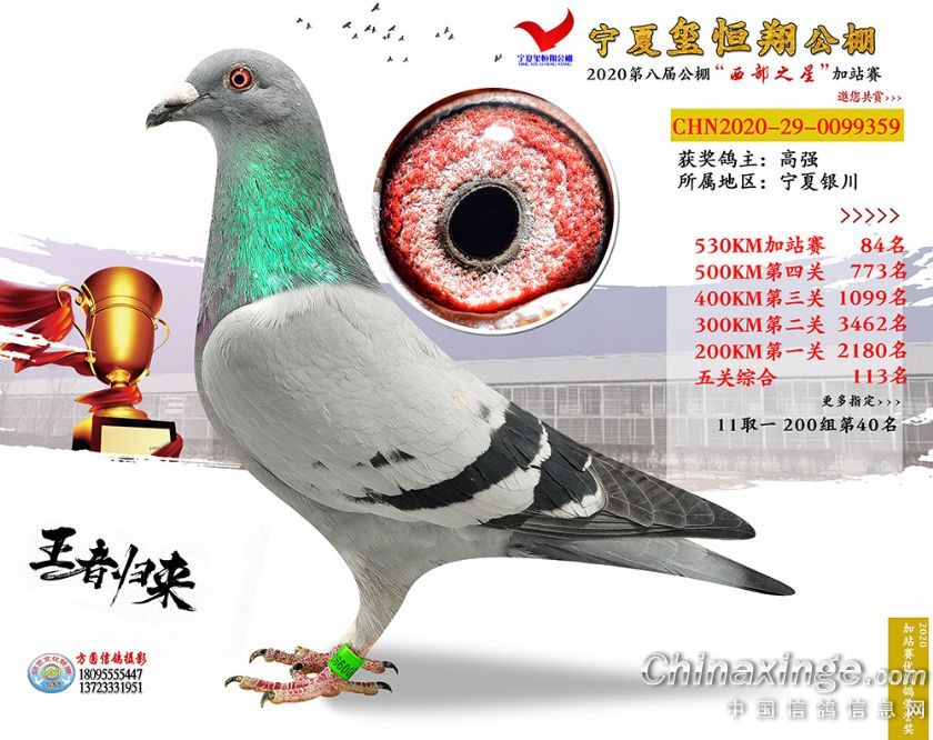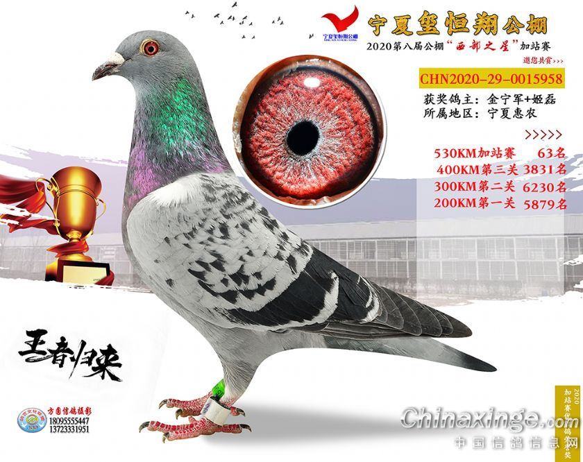 作品说明: 2020年宁夏玺恒翔赛鸽公棚加站赛获奖鸽照片61-90