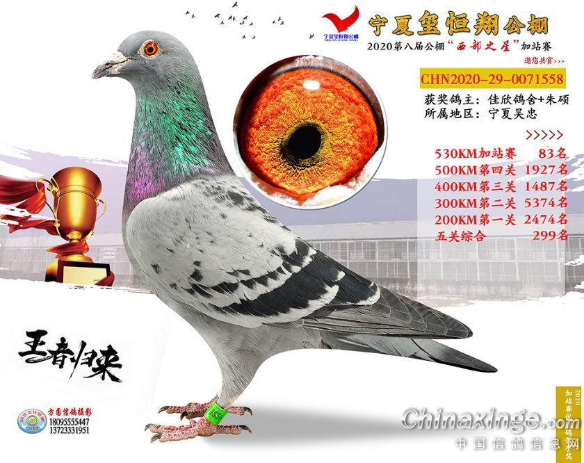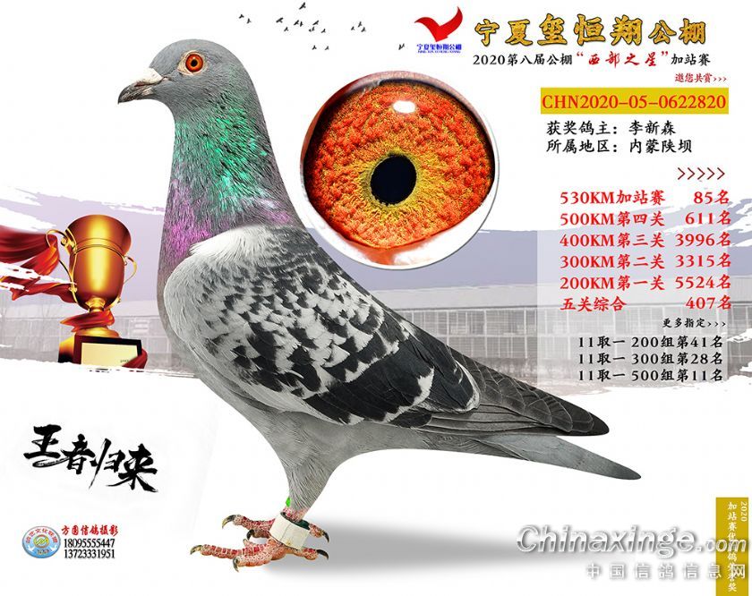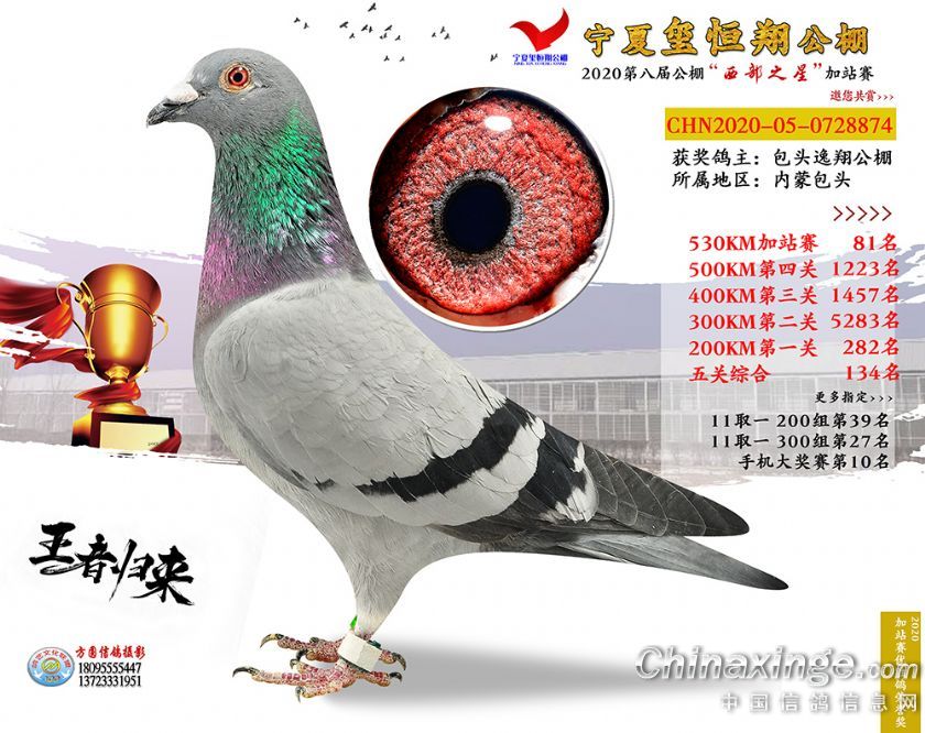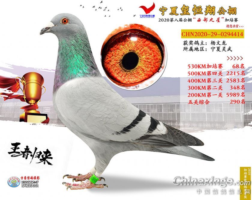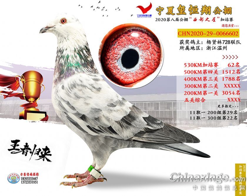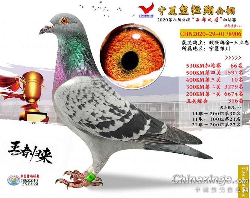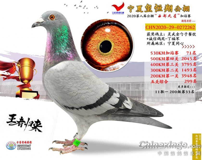作品说明: 2020年宁夏玺恒翔赛鸽公棚加站赛获奖鸽照片61-90