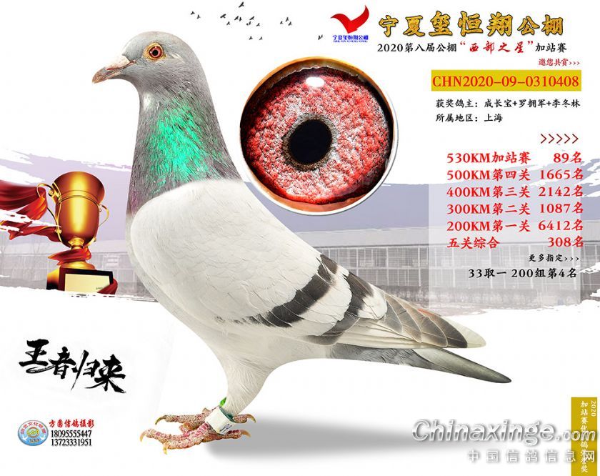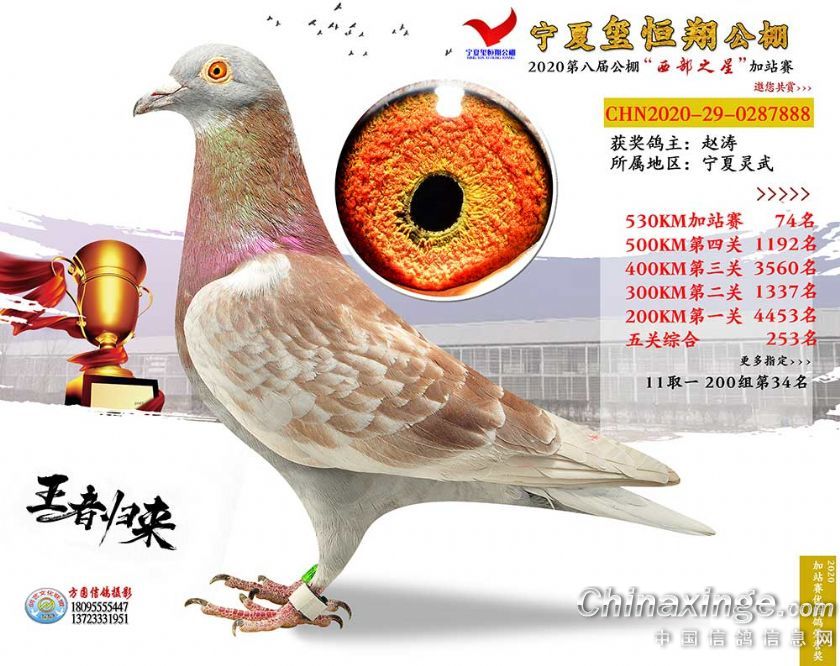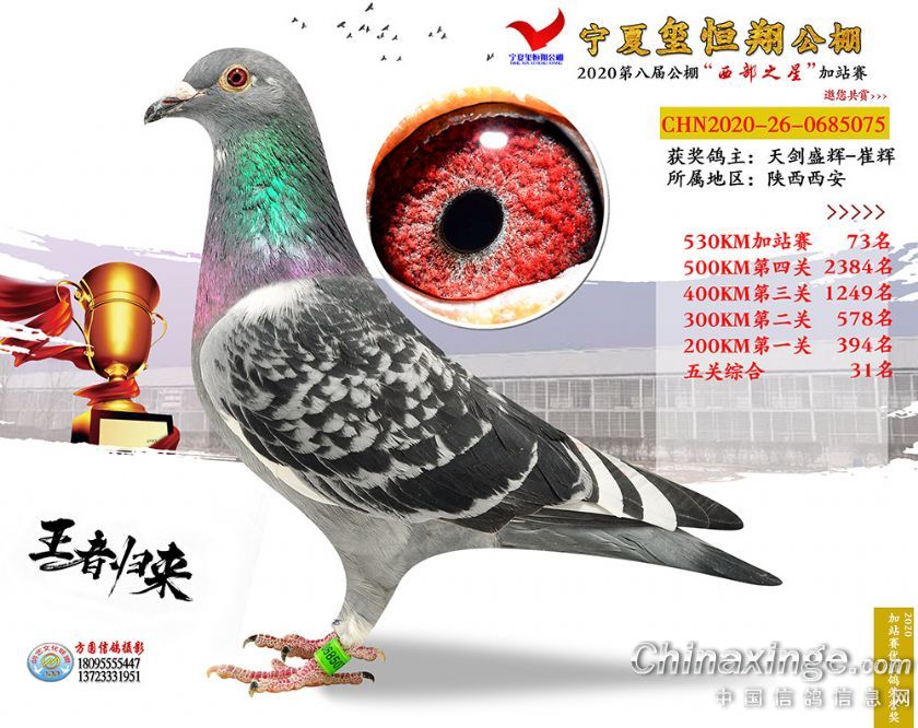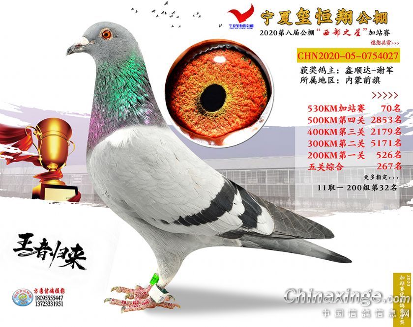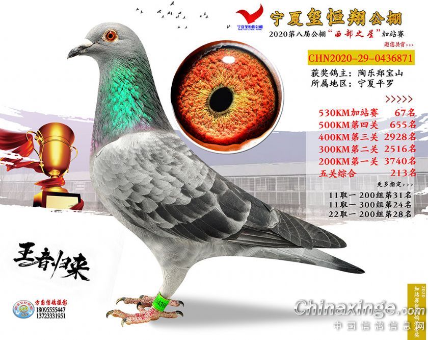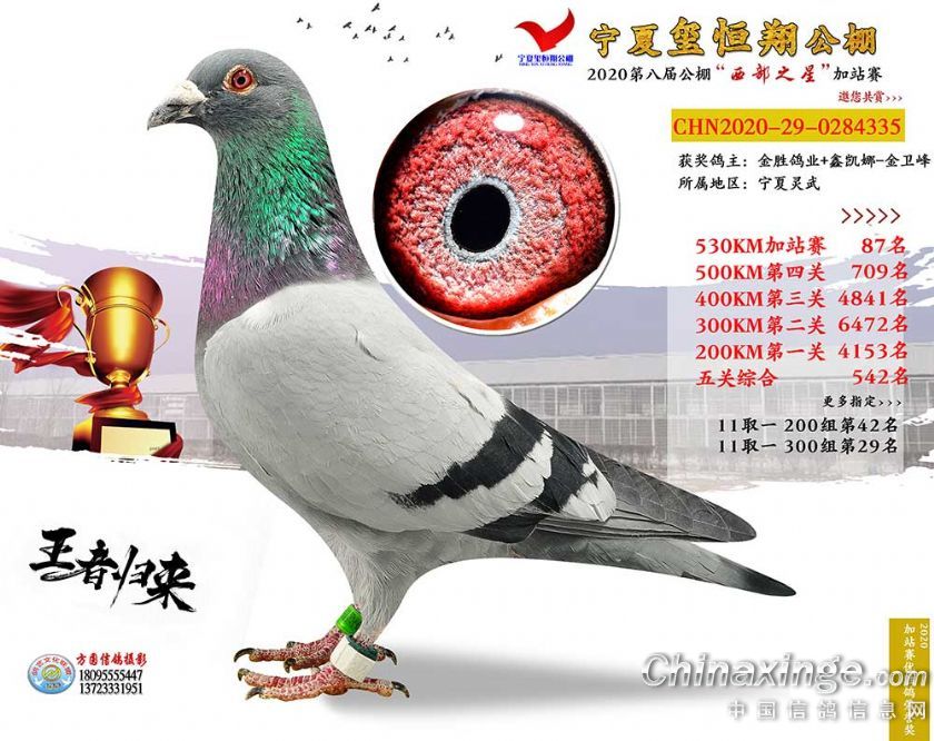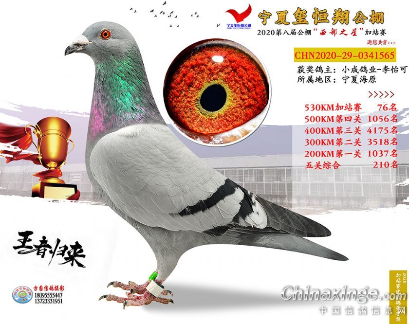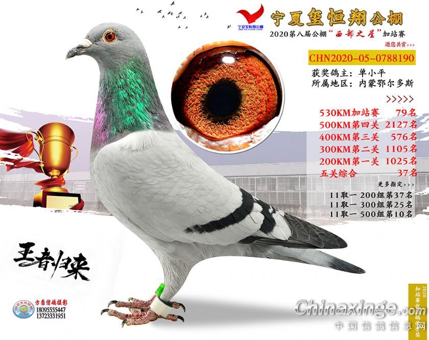 作品说明: 2020年宁夏玺恒翔赛鸽公棚加站赛获奖鸽照片61-90