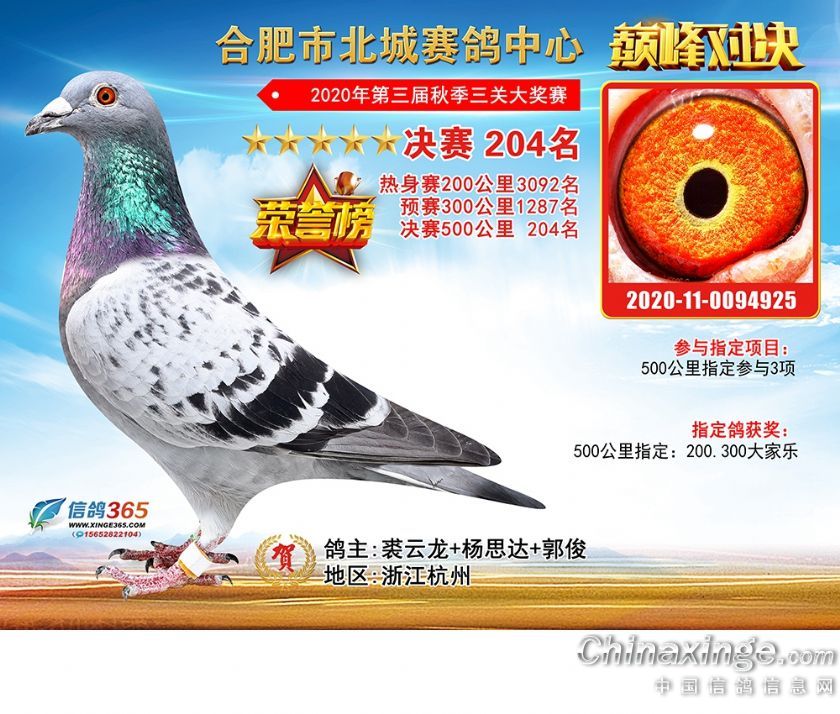 合肥北城赛鸽中心2020年决赛获奖鸽181-210