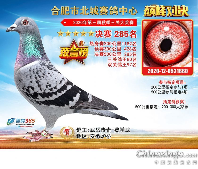 作品说明: 合肥北城赛鸽中心2020年决赛获奖鸽271-300