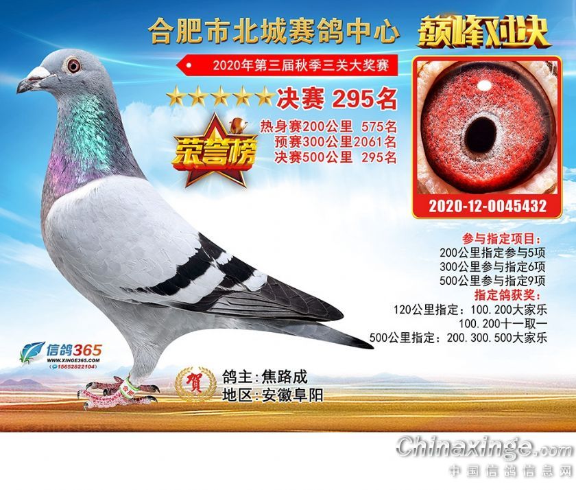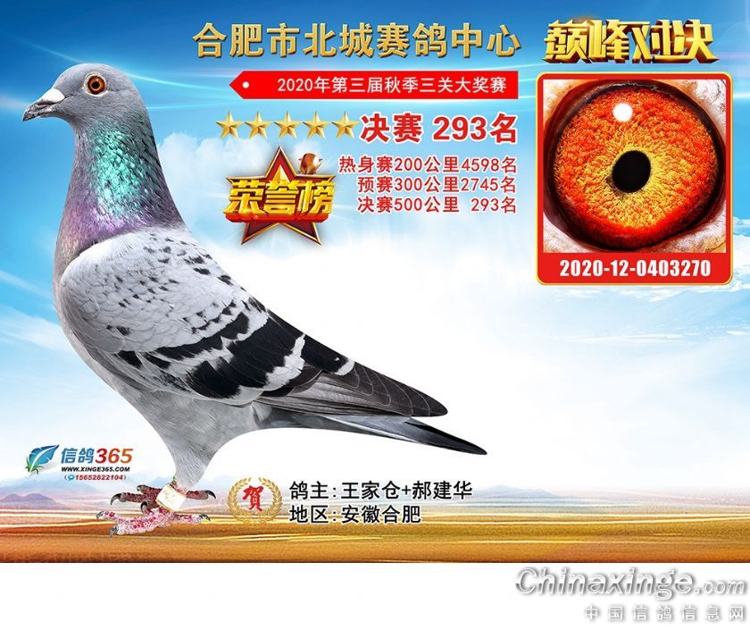 合肥北城赛鸽中心2020年决赛获奖鸽271-300