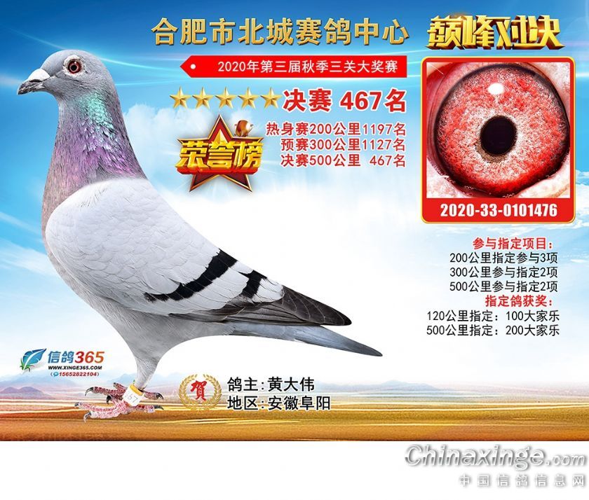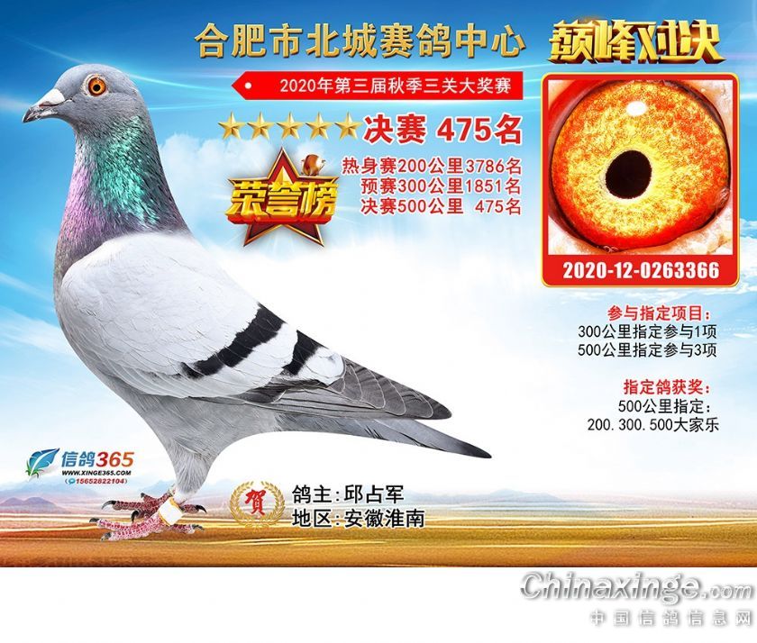 合肥北城赛鸽中心2020年决赛获奖鸽451-480