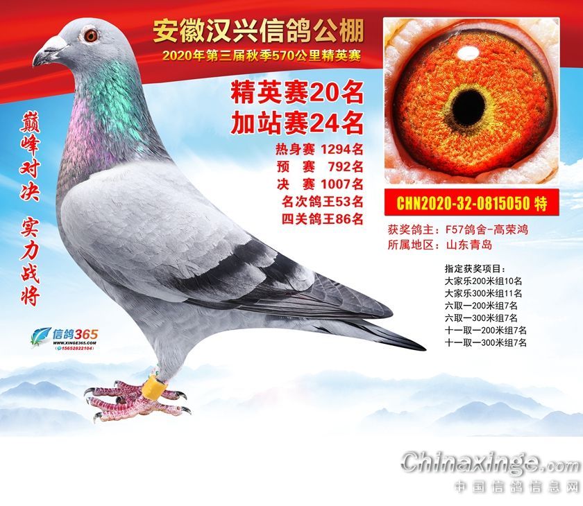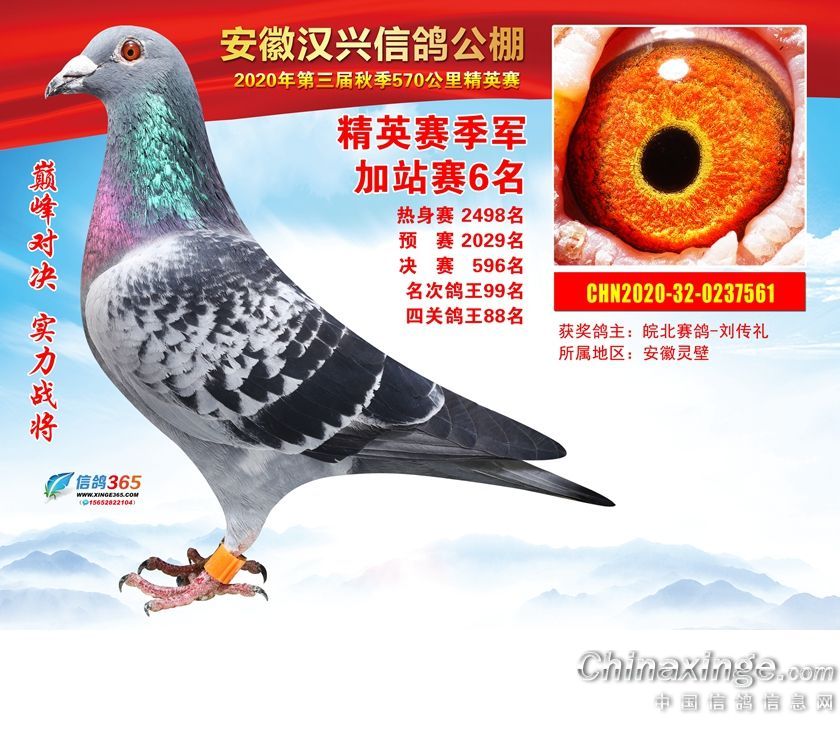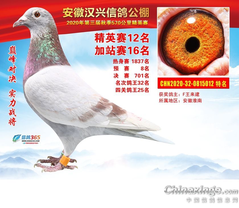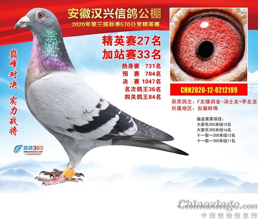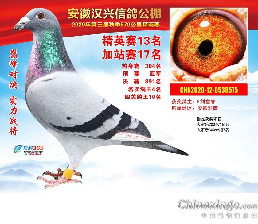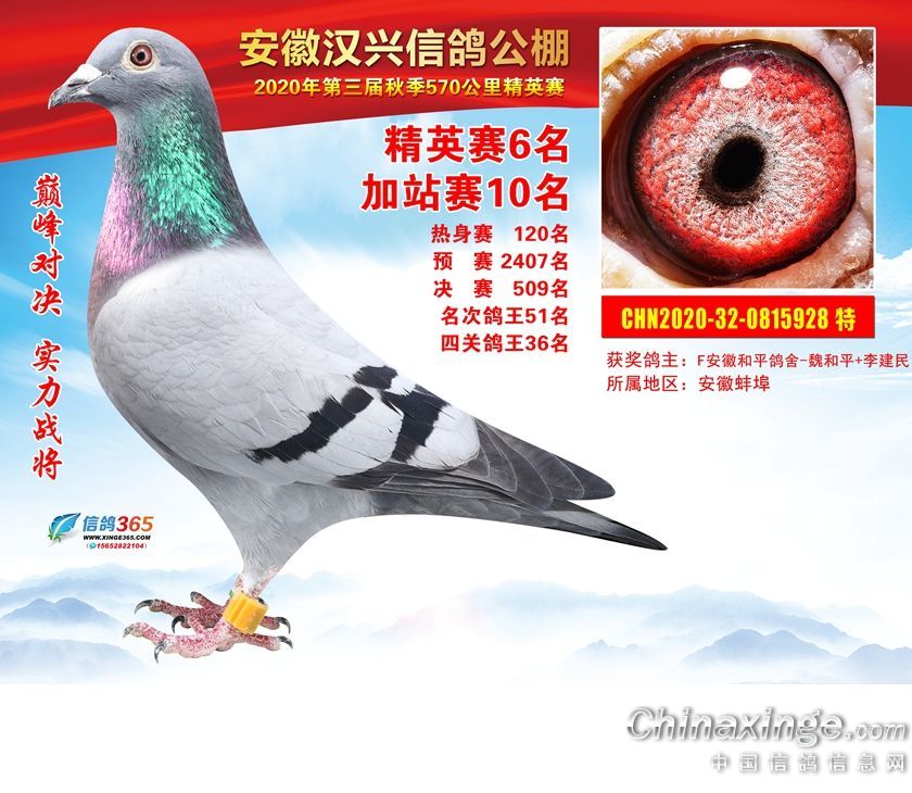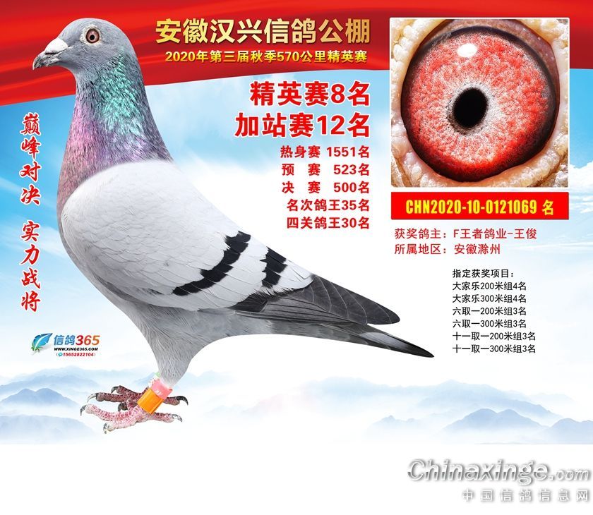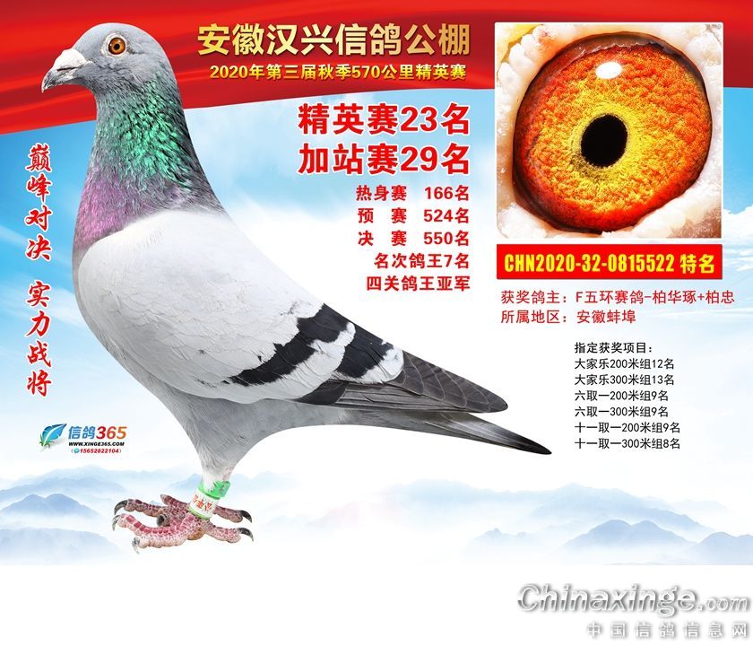 作品说明: 安徽汉兴公棚570公里精英赛获奖鸽1-30