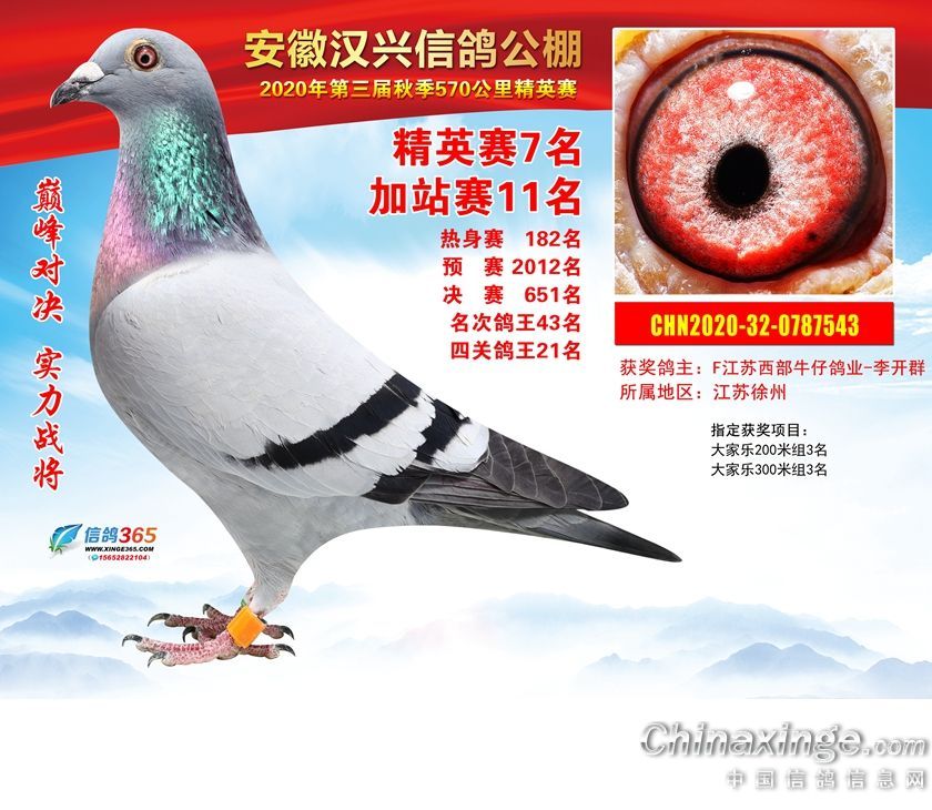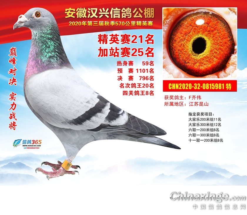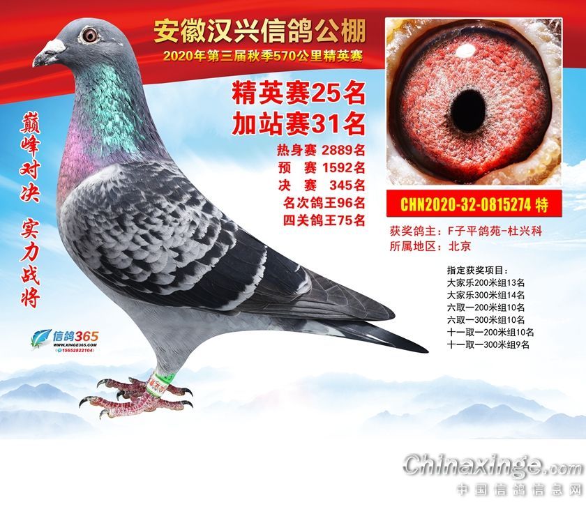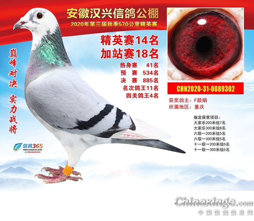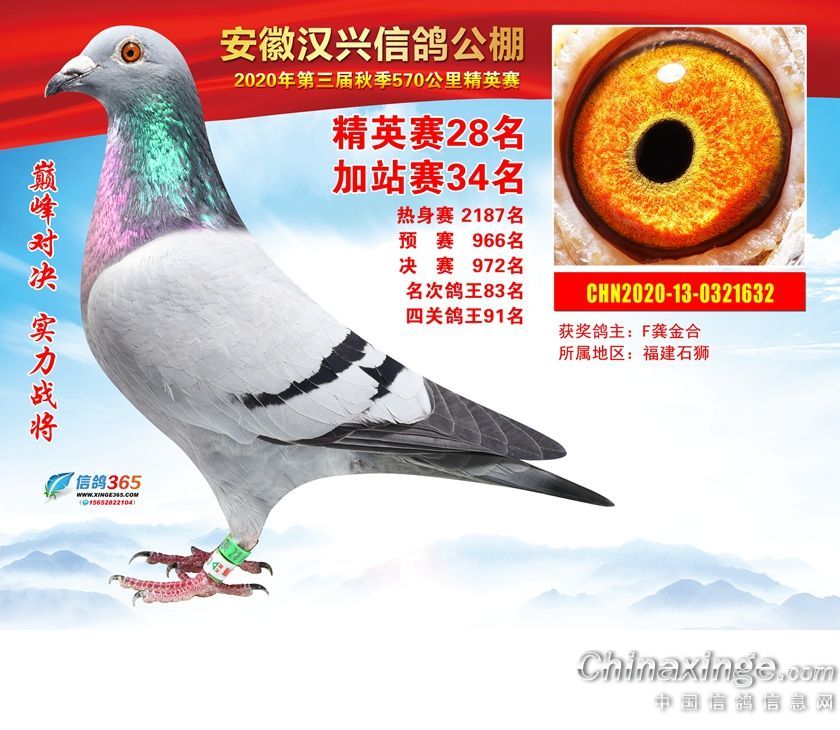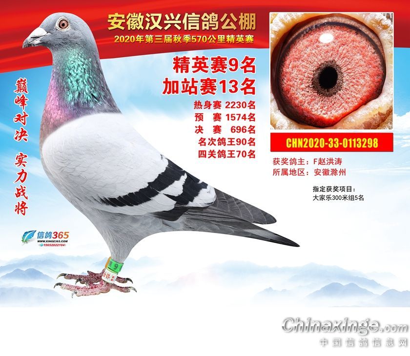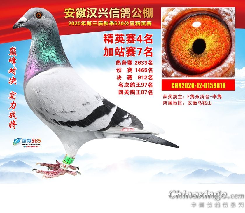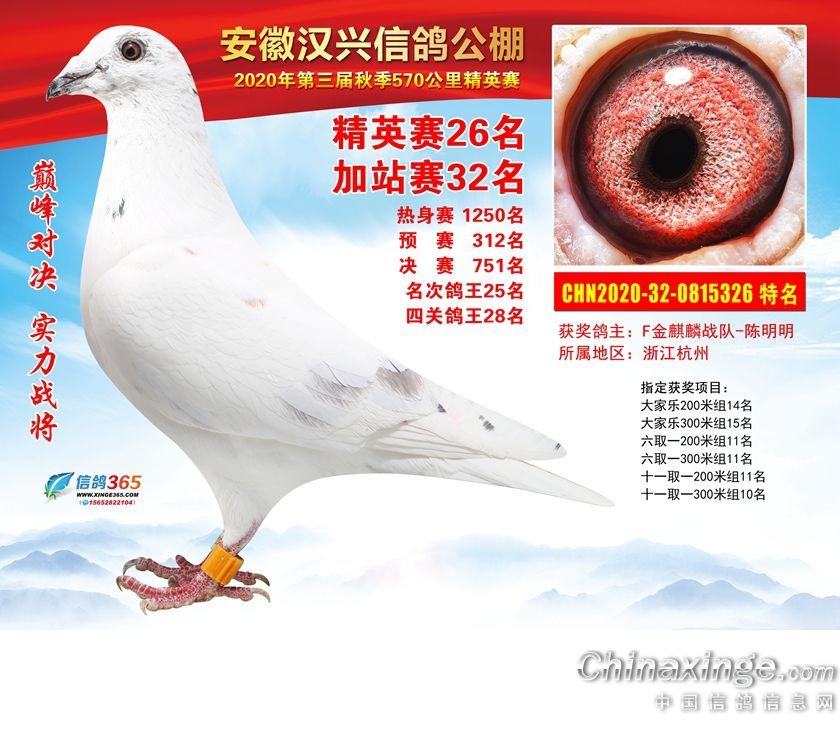 作品说明: 安徽汉兴公棚570公里精英赛获奖鸽1-30