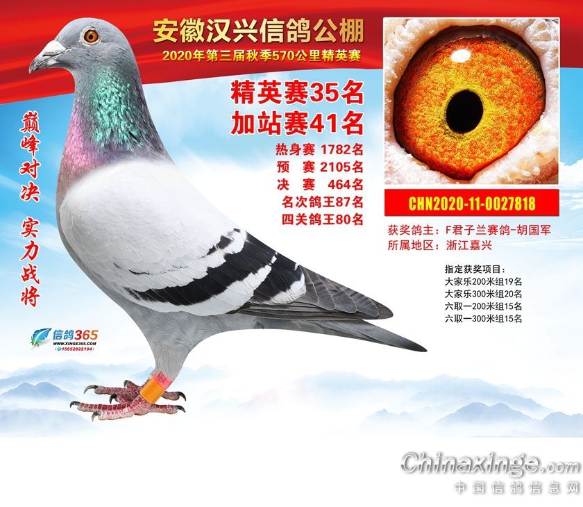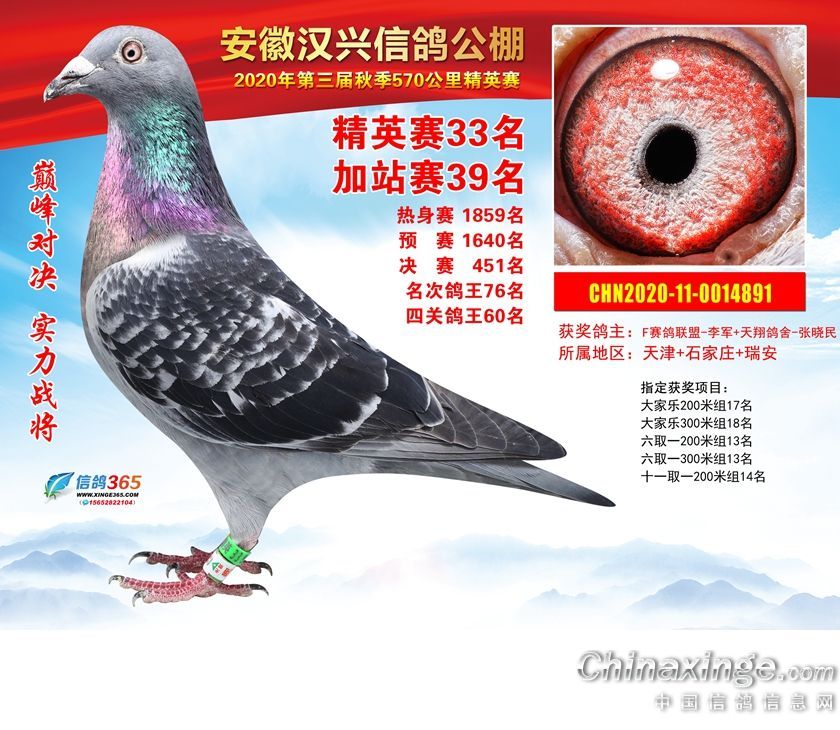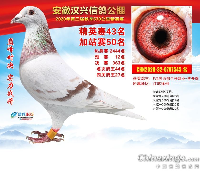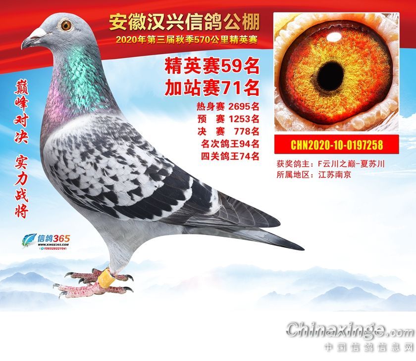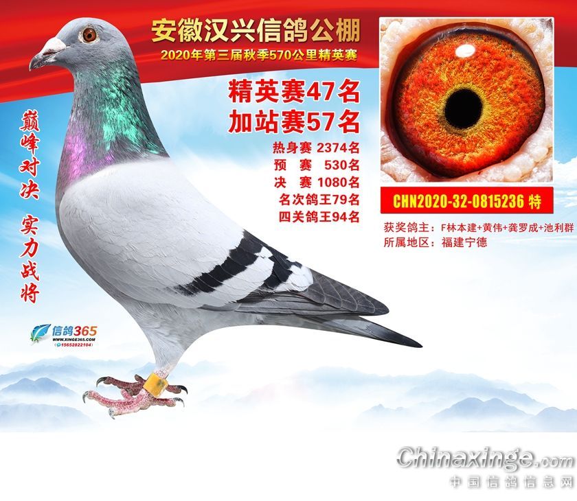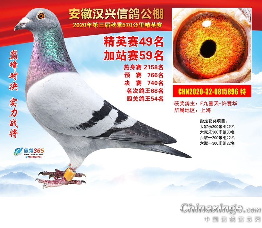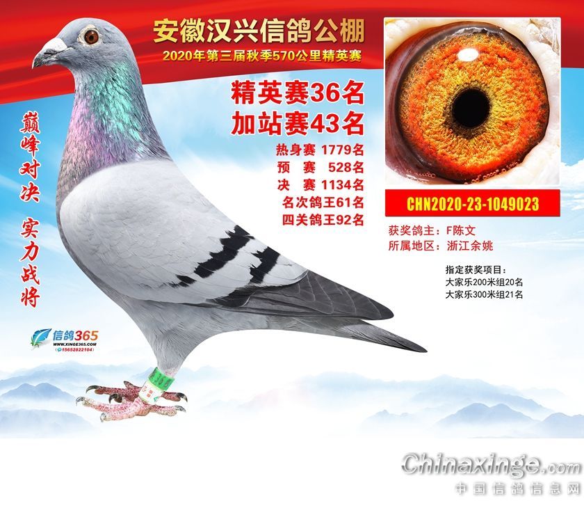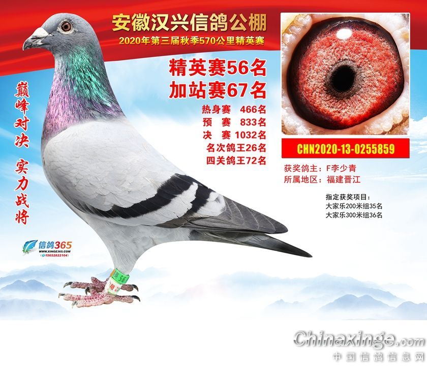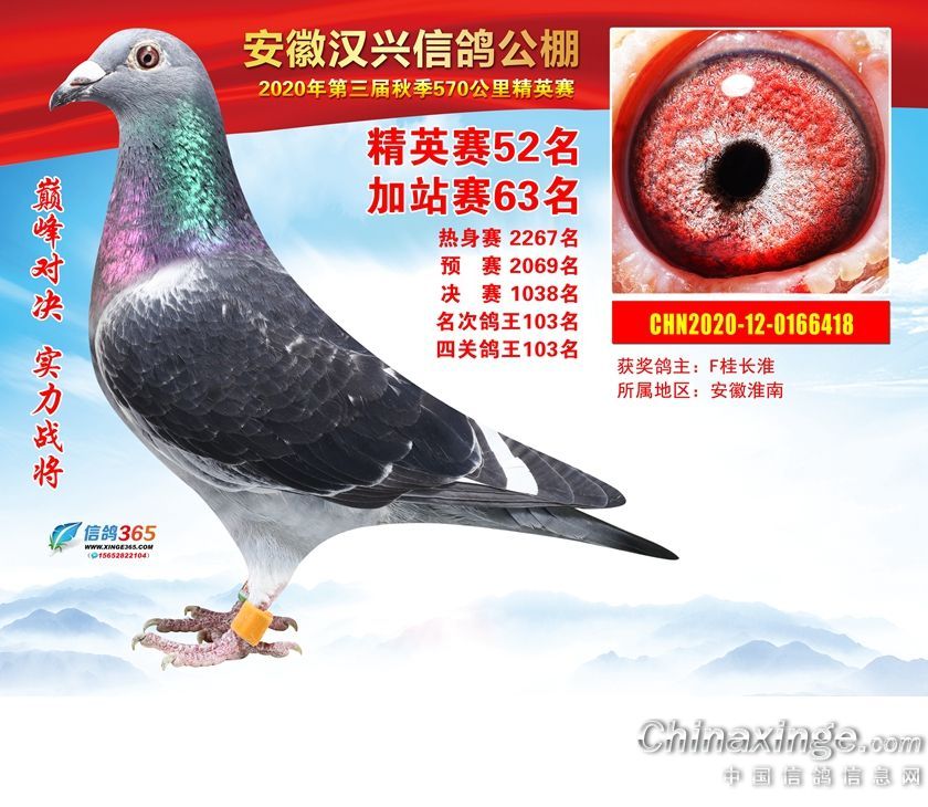 作品说明: 安徽汉兴公棚570公里精英赛获奖鸽31-60
