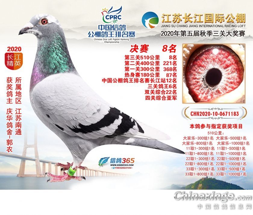 作品说明: 江苏长江公棚2020年获奖鸽欣赏1-30名
