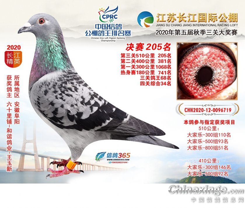 作品说明: 江苏长江公棚2020年获奖鸽欣赏181-210名