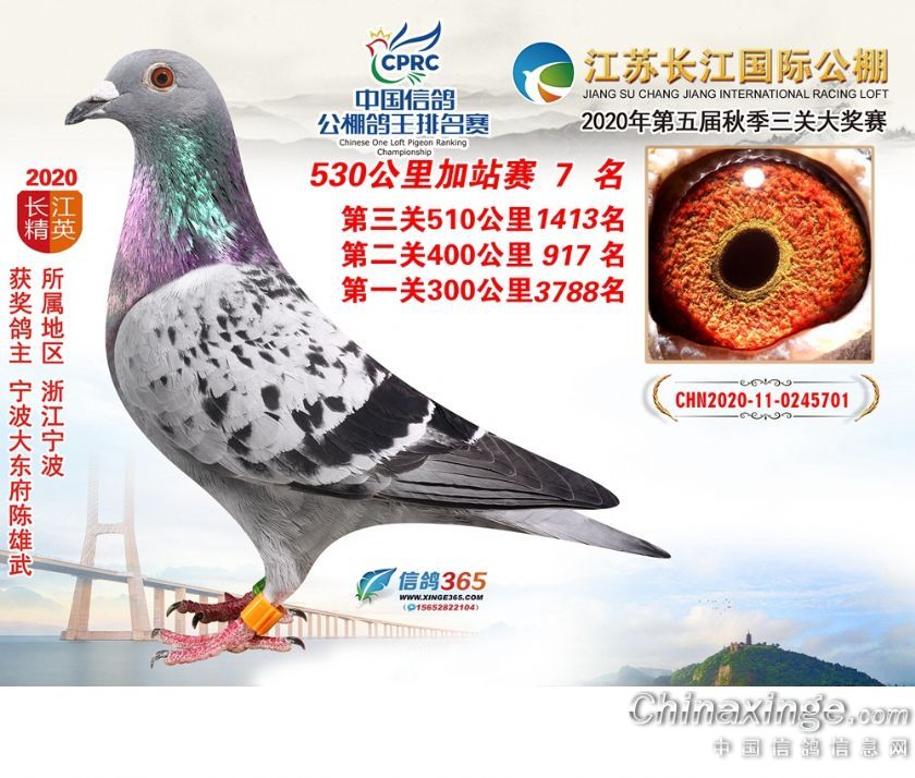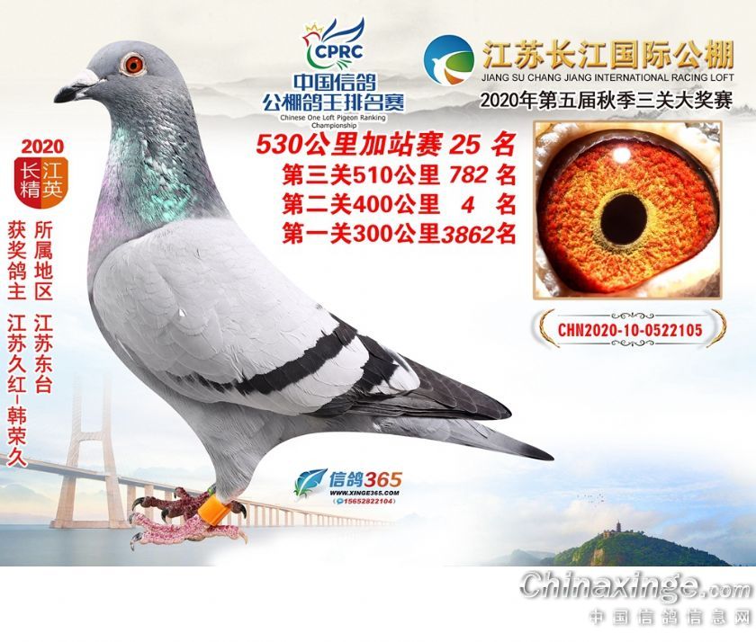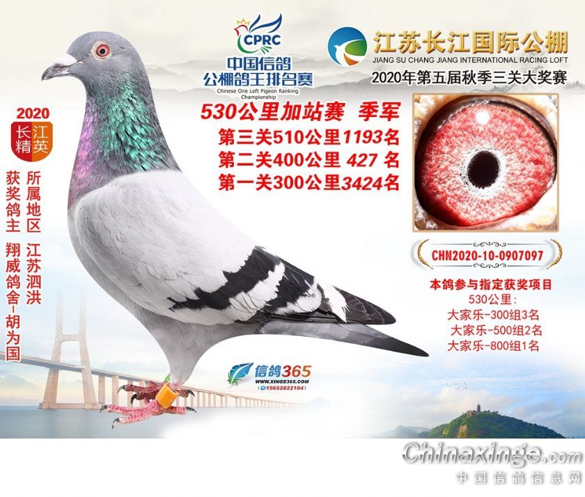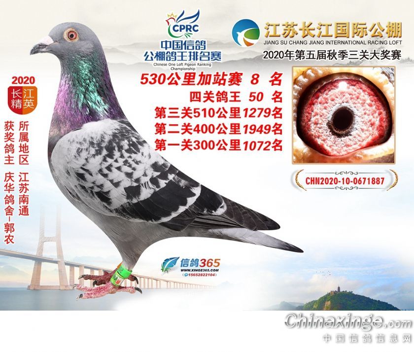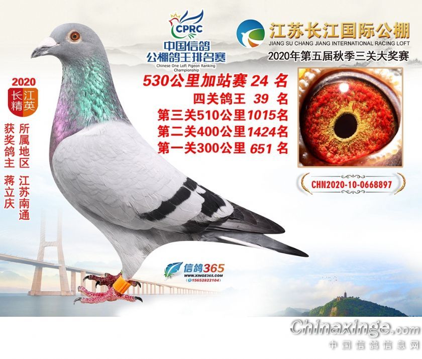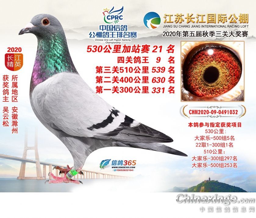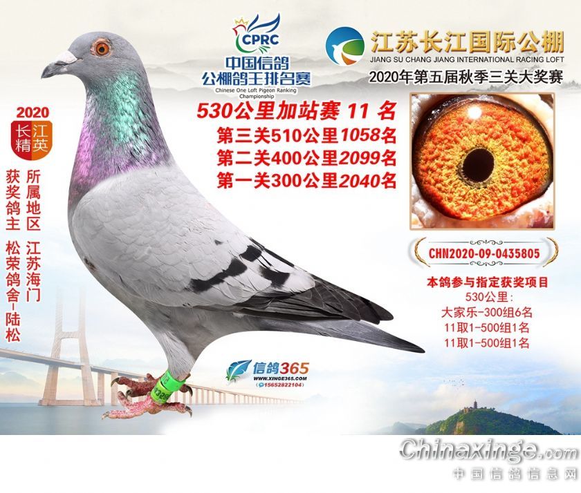 作品说明: 江苏长江公棚2020年530公里加站赛获奖鸽欣赏1-25名