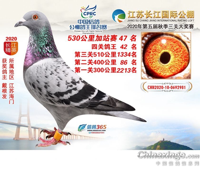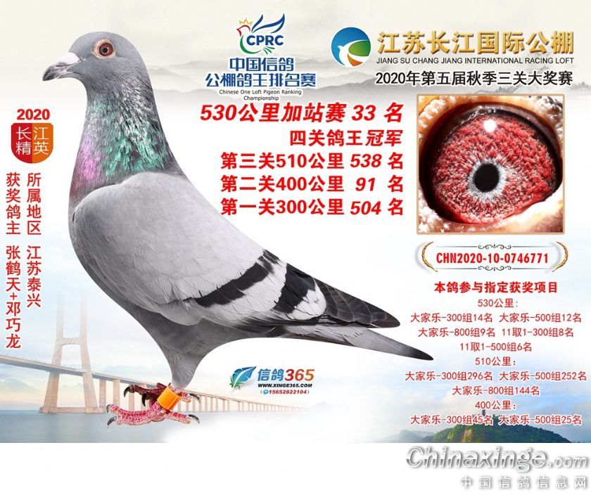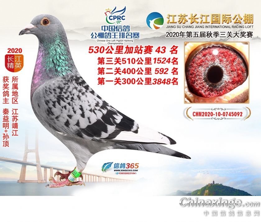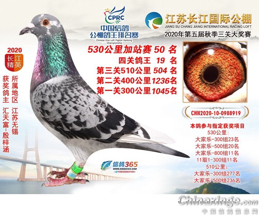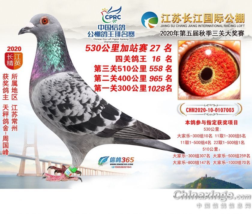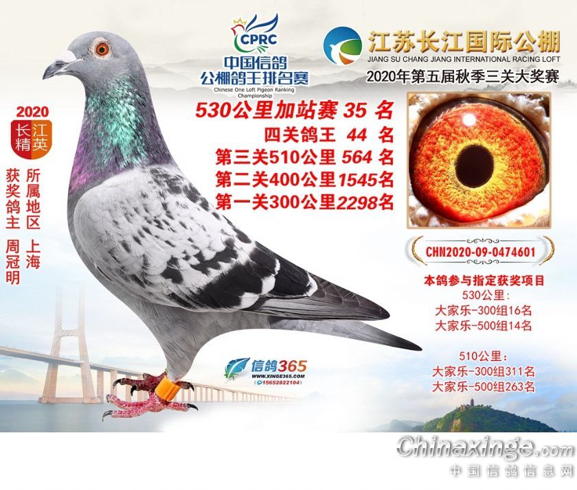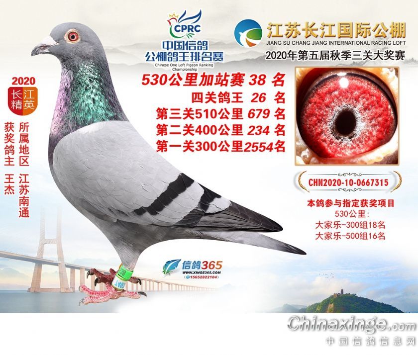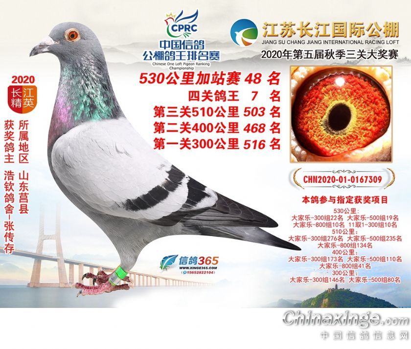 作品说明: 江苏长江公棚2020年530公里加站赛获奖鸽欣赏26-50名